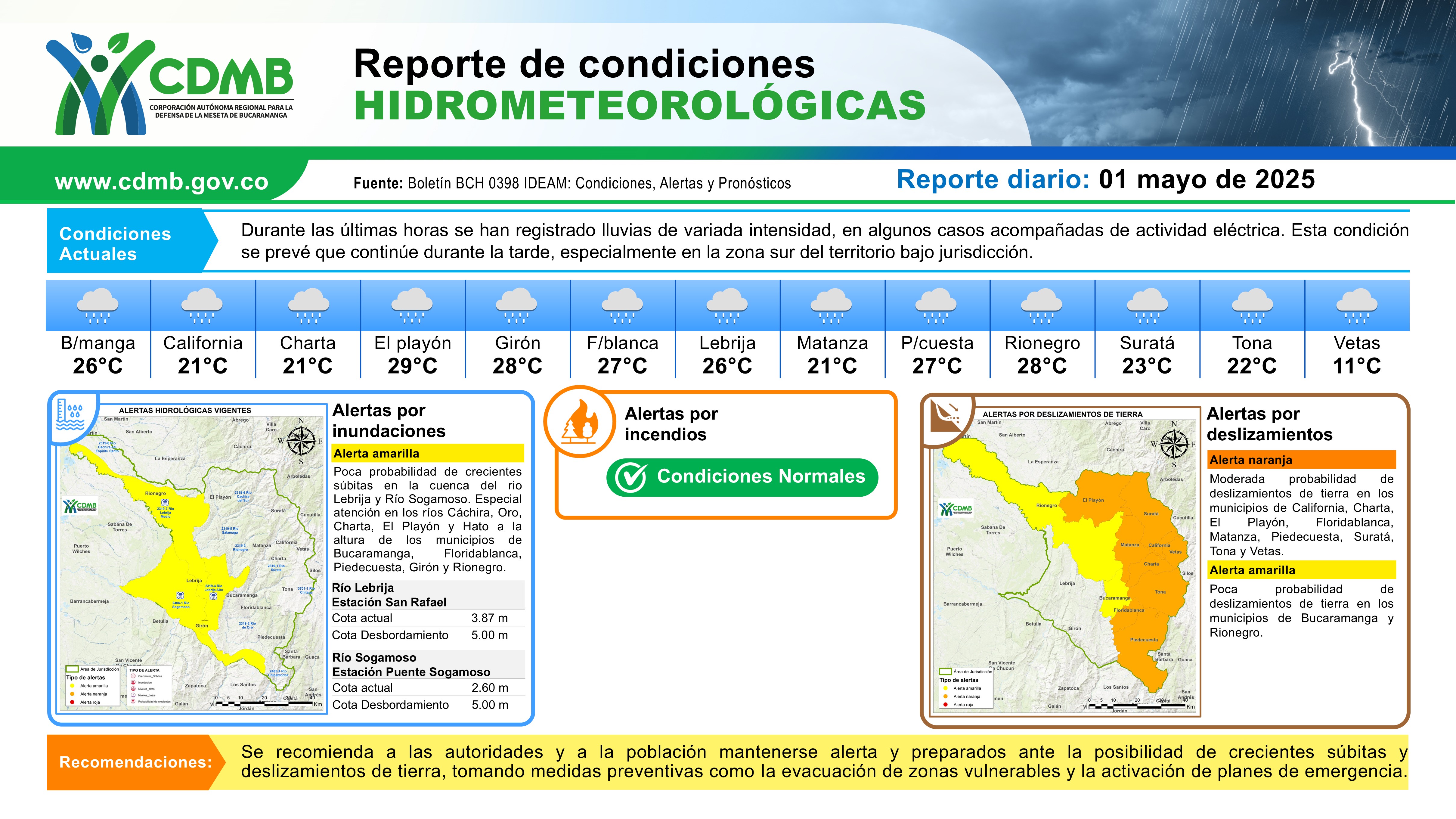 Reporte Alertas Hidrometeorológicas 01 de junio
