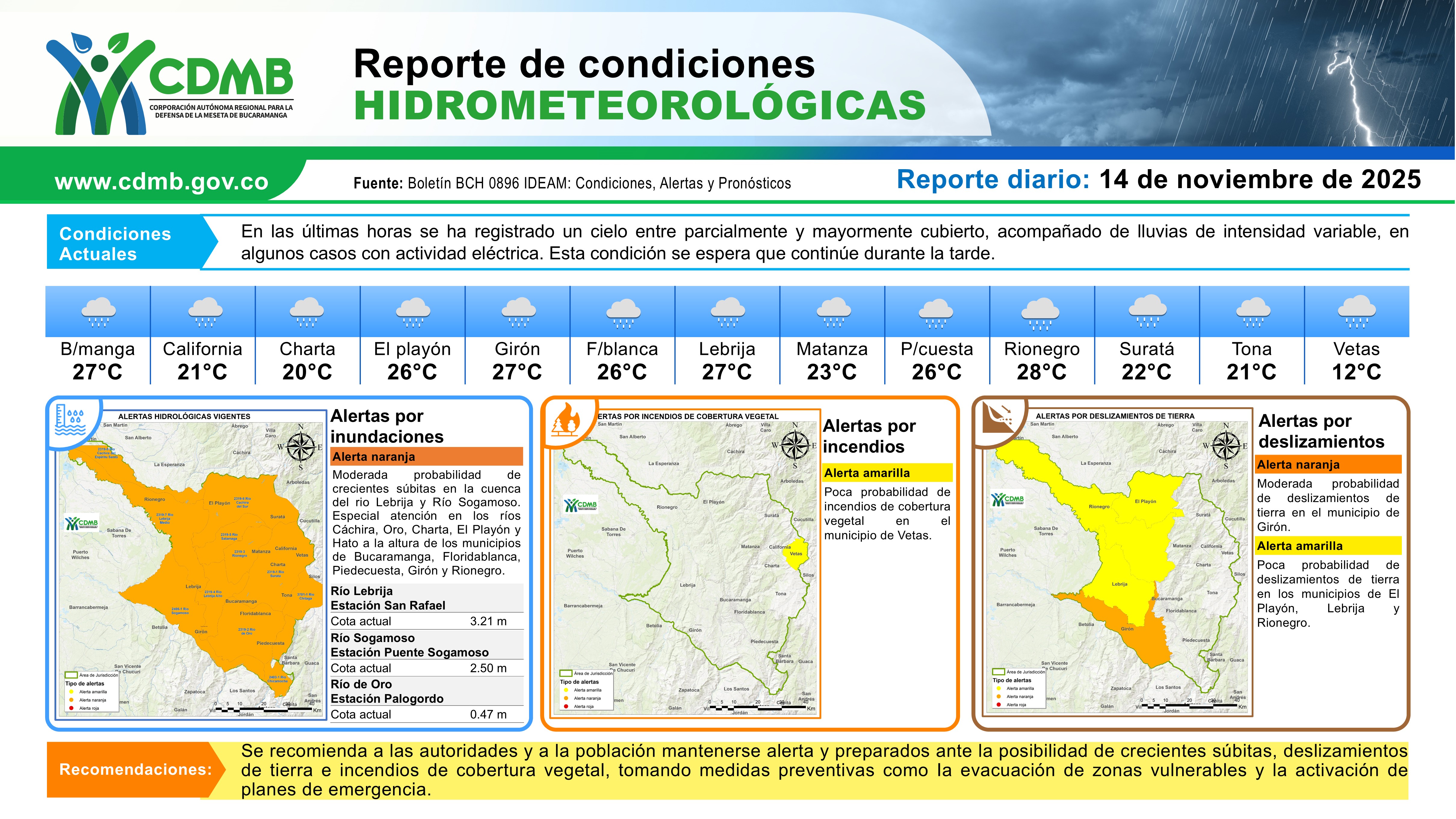 Reporte Alertas Hidrometeorológicas 14 de noviembre