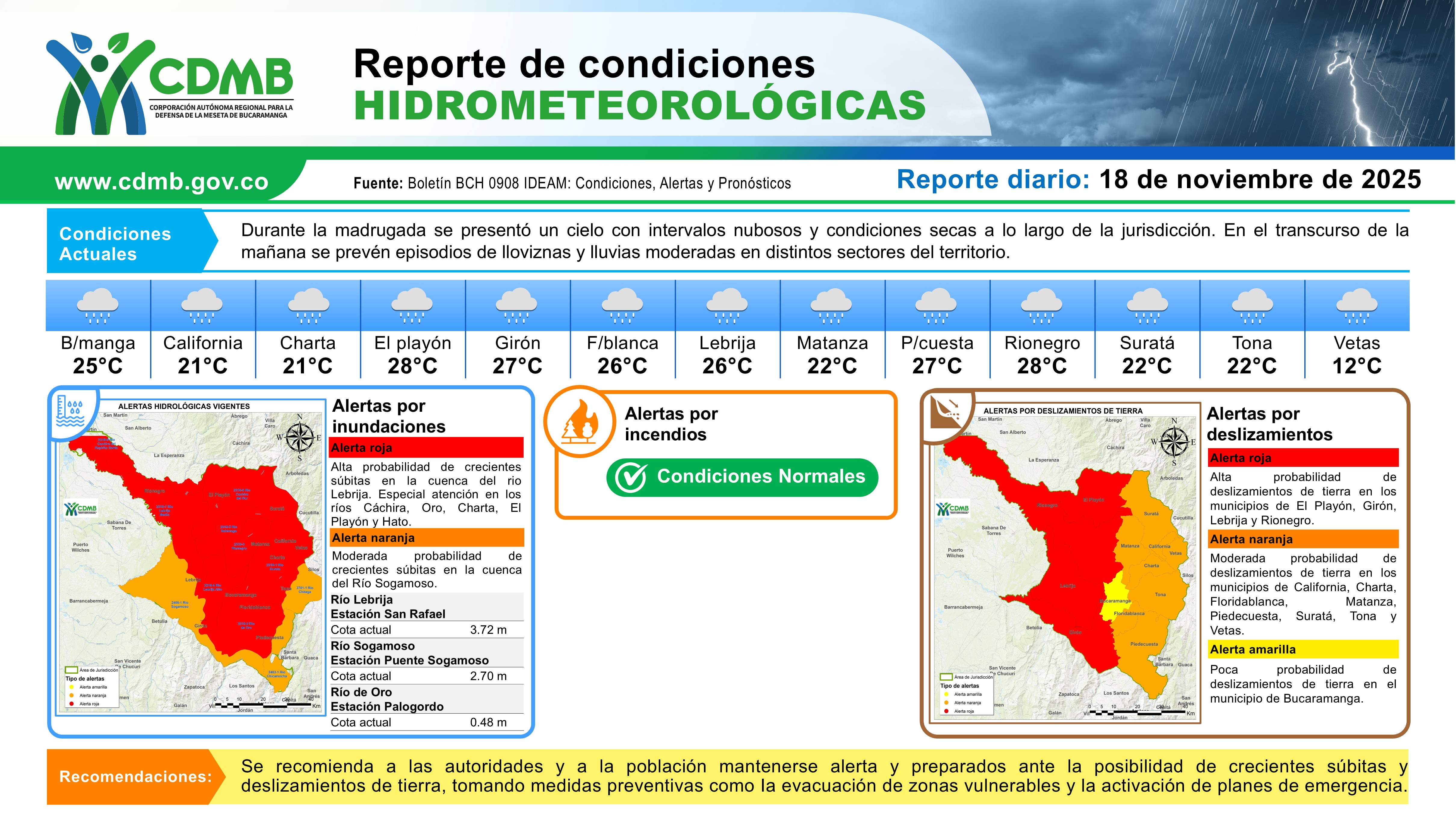 Reporte Alertas Hidrometeorológicas 18 de noviembre