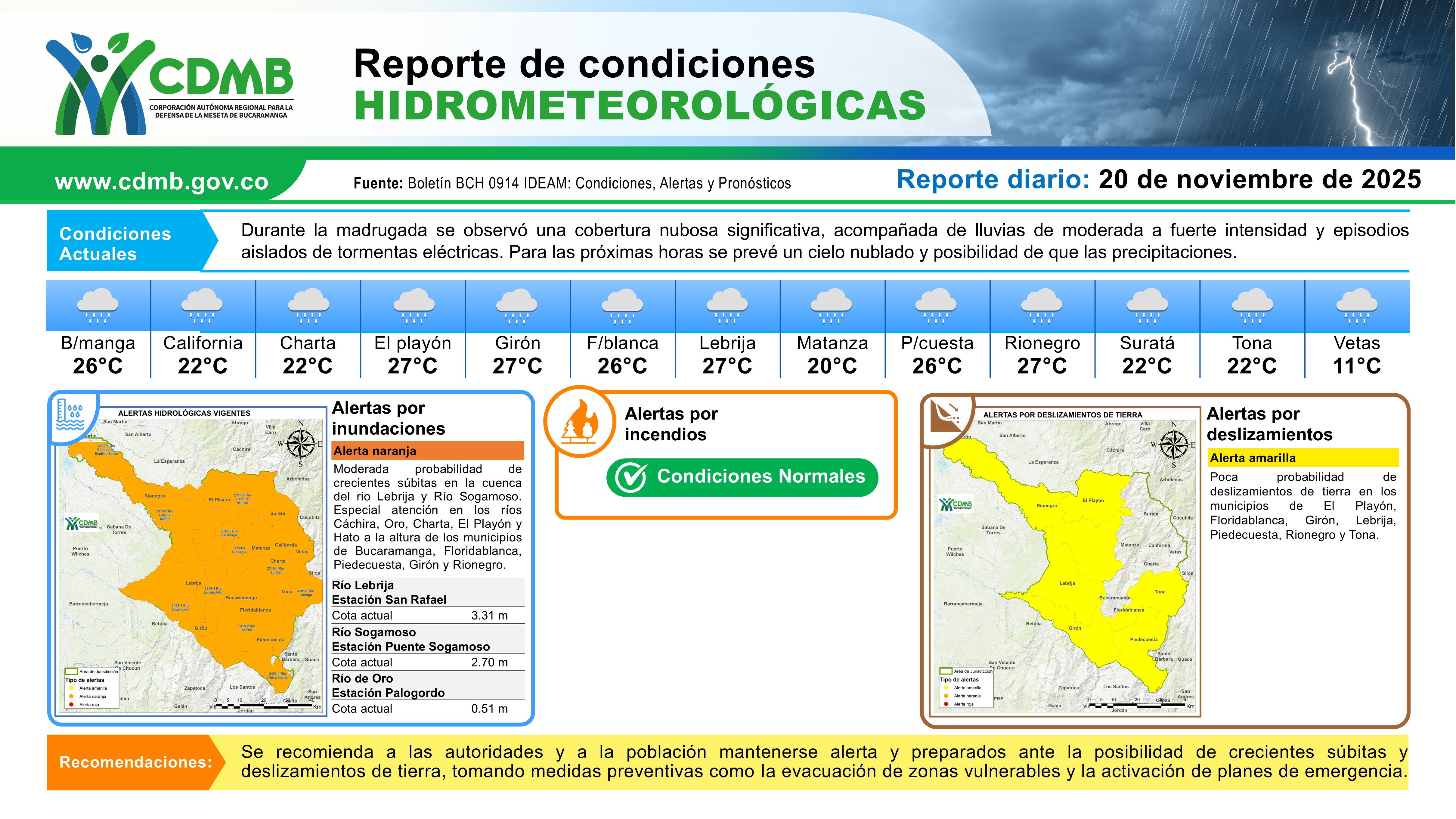 Reporte Alertas Hidrometeorológicas 26 de noviembre