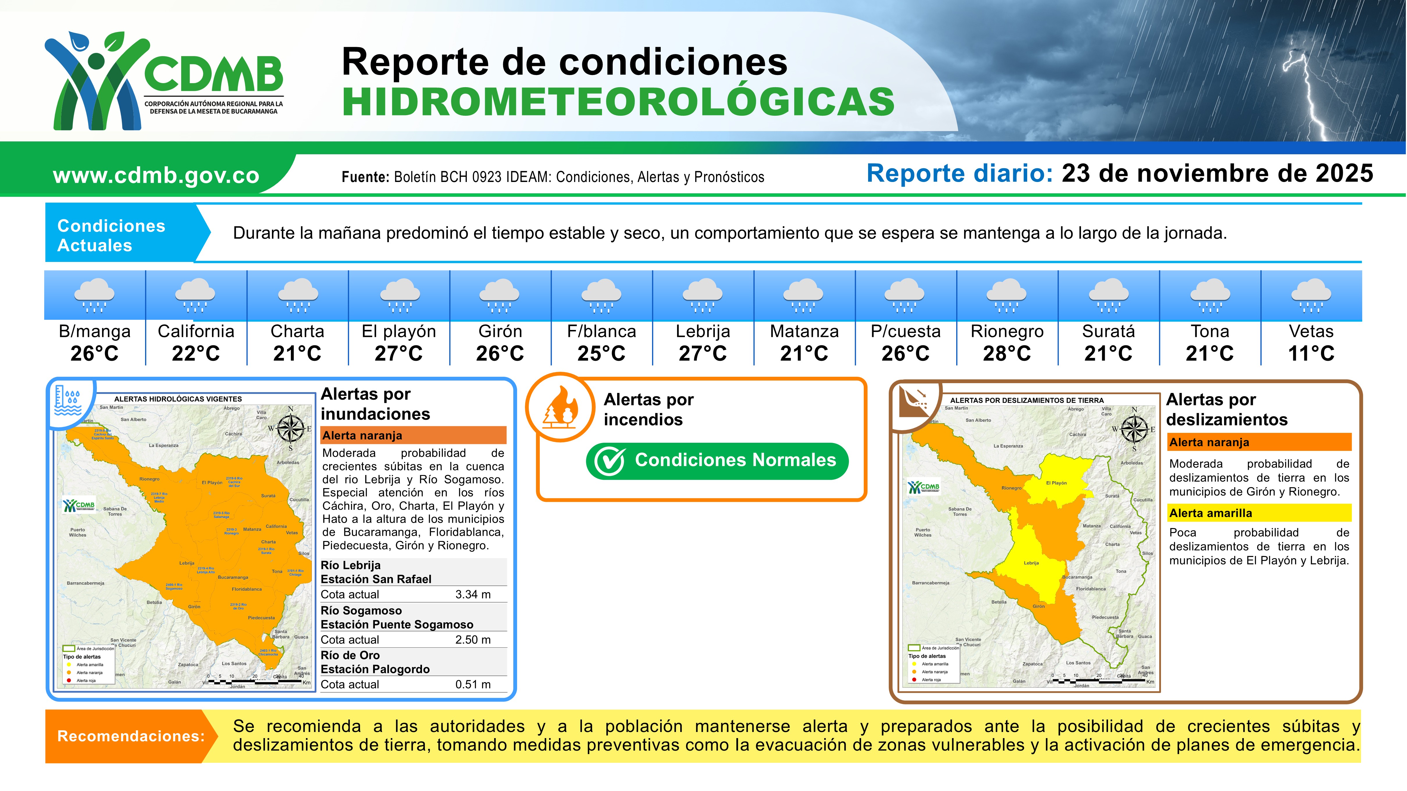 Reporte Alertas Hidrometeorológicas 23 de noviembre