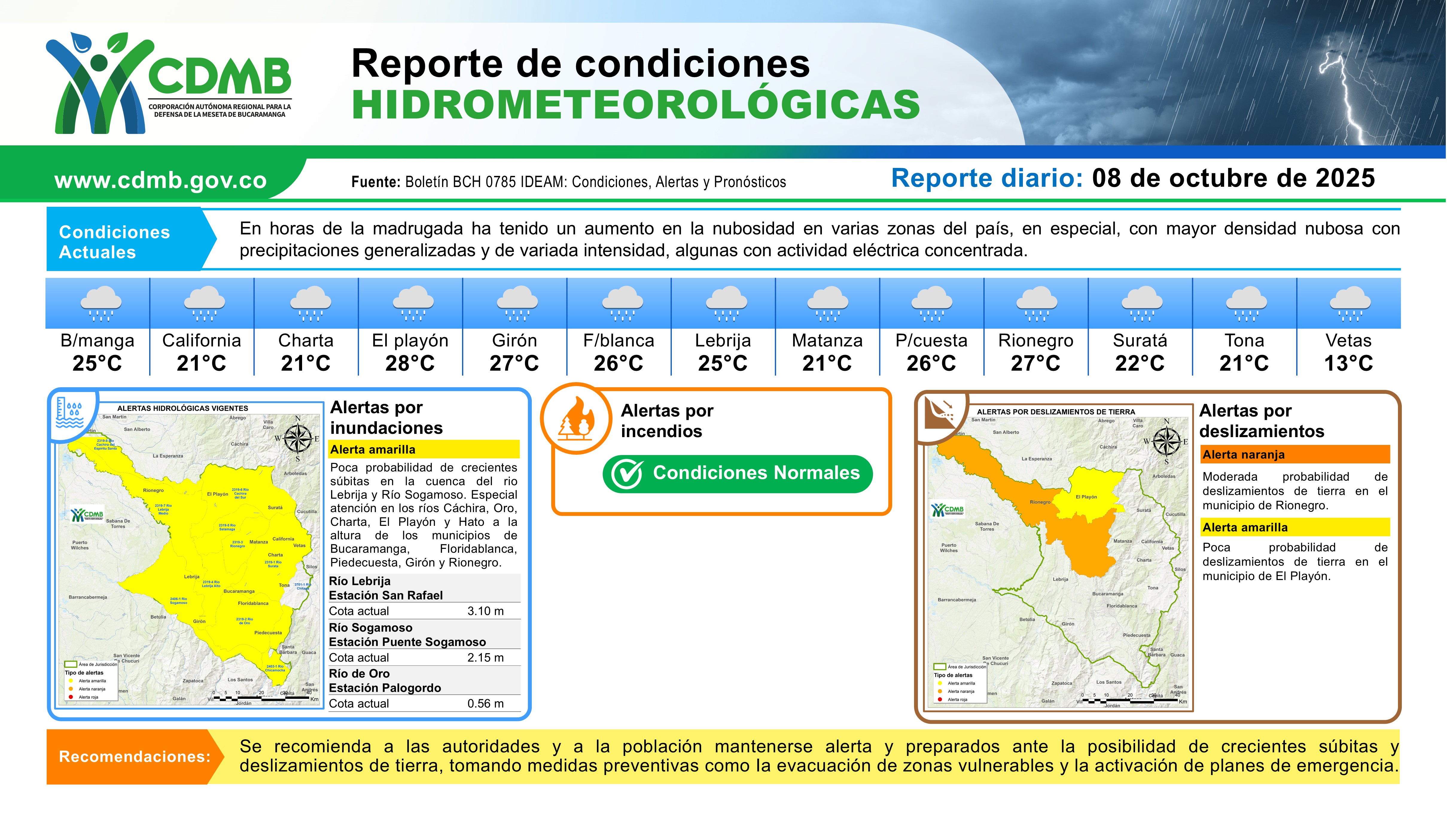 Reporte Alertas Hidrometeorológicas 08 de octubre