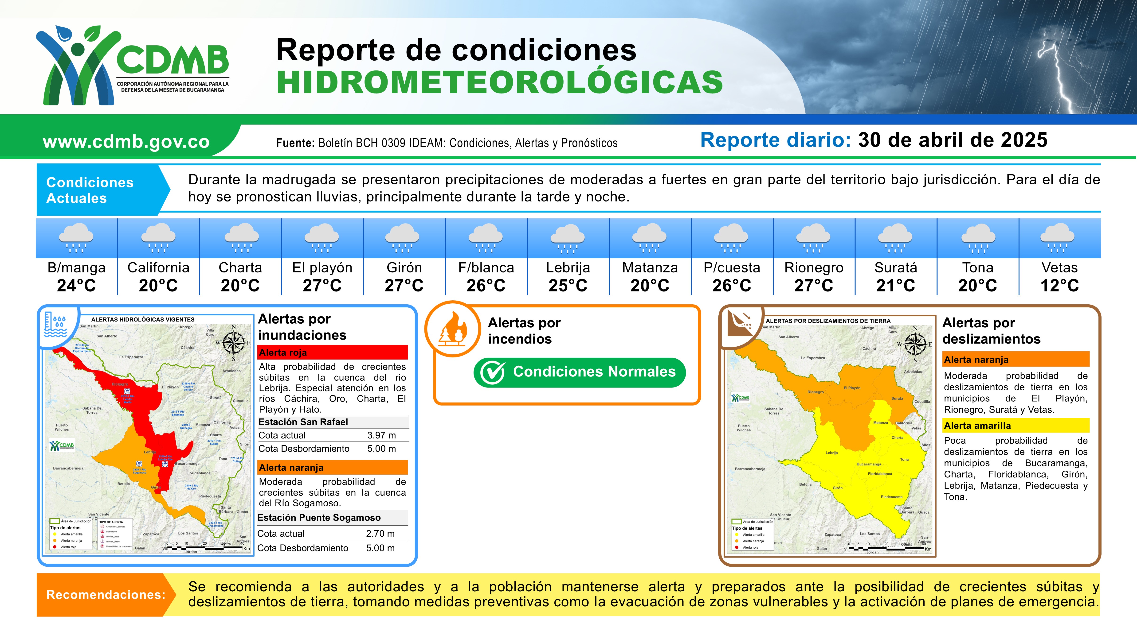 Reporte Alertas Hidrometeorológicas 30 de abril