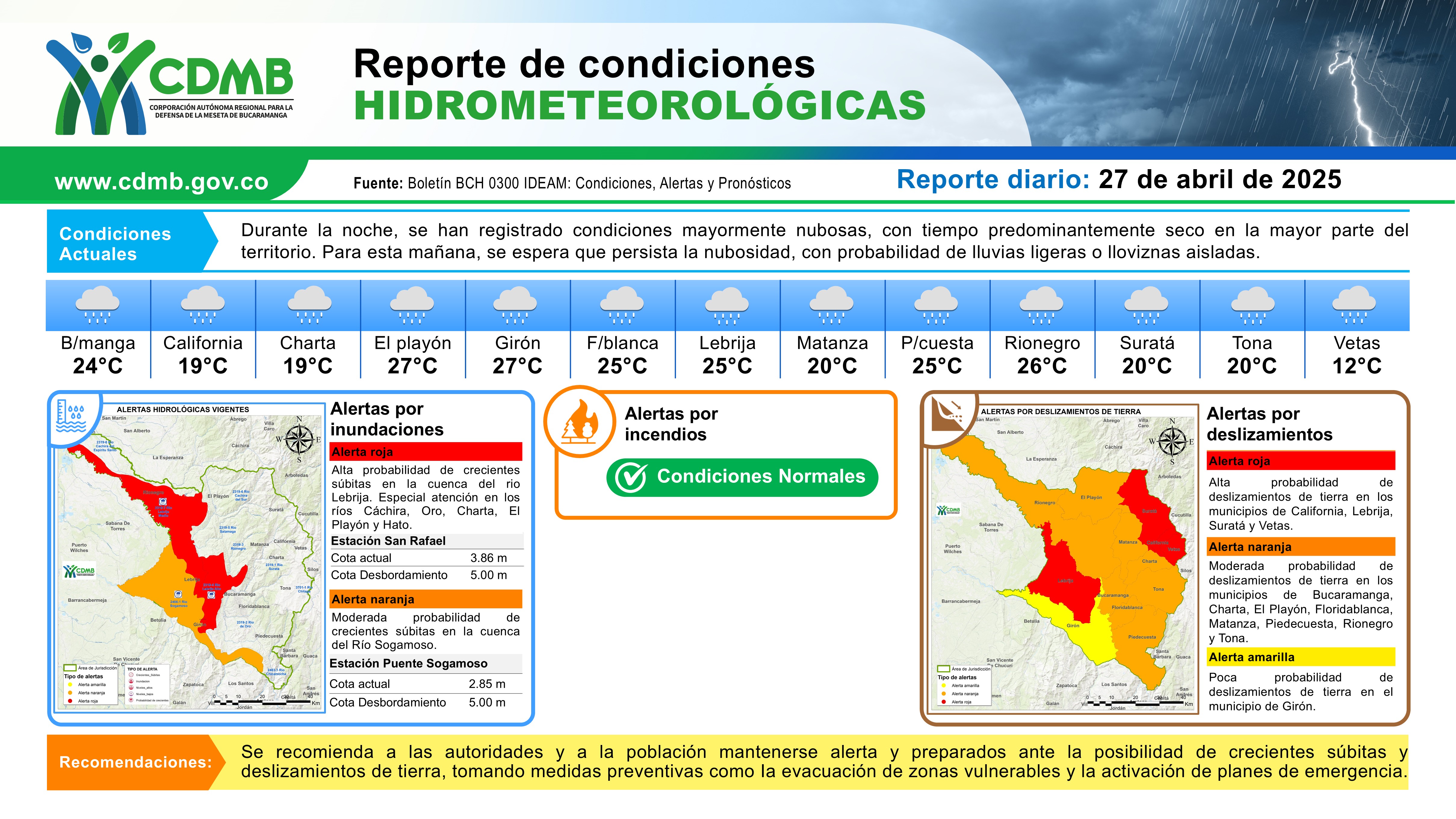 Reporte Alertas Hidrometeorológicas 27 de abril