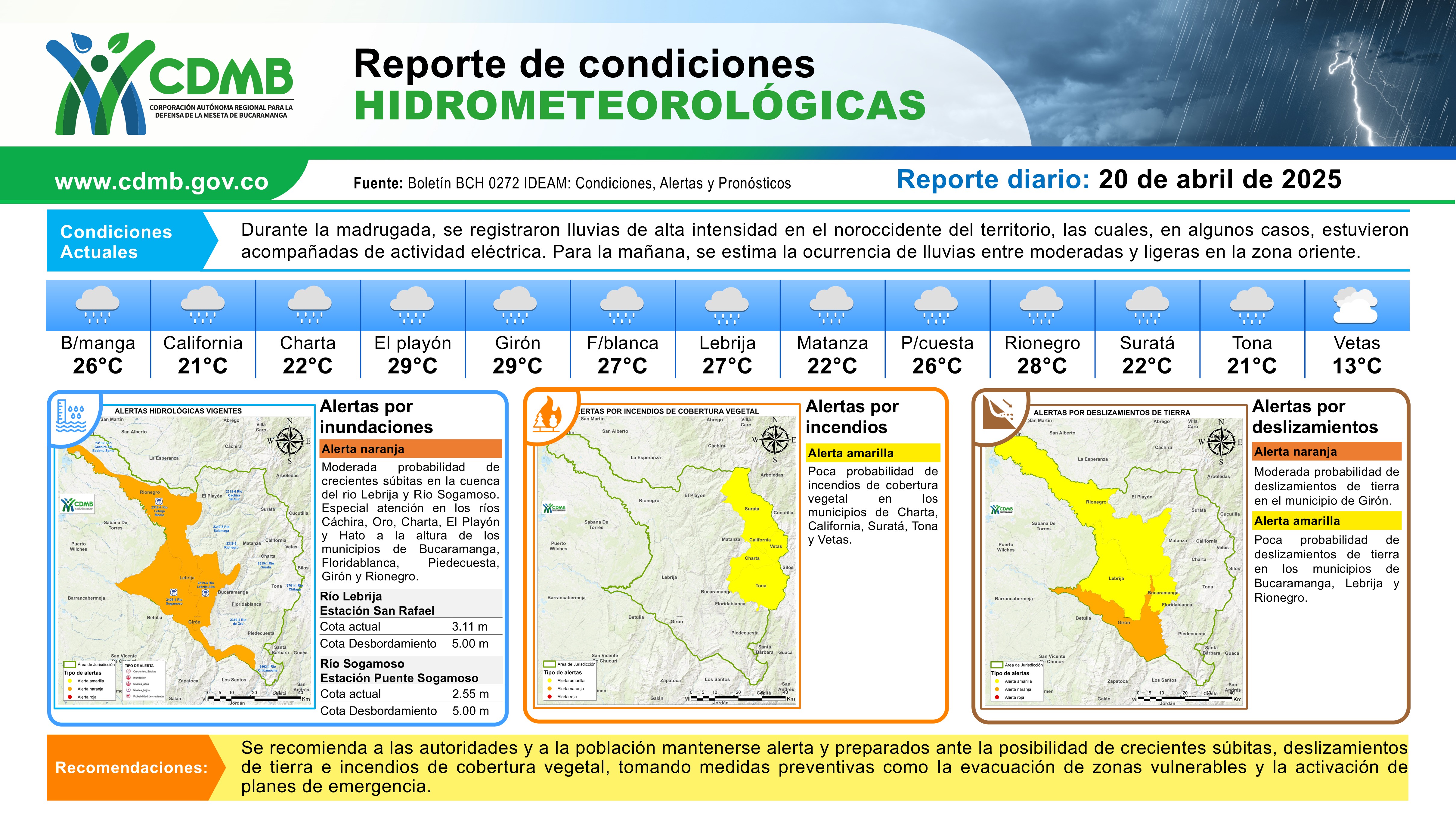 Reporte Alertas Hidrometeorológicas 20 de abril