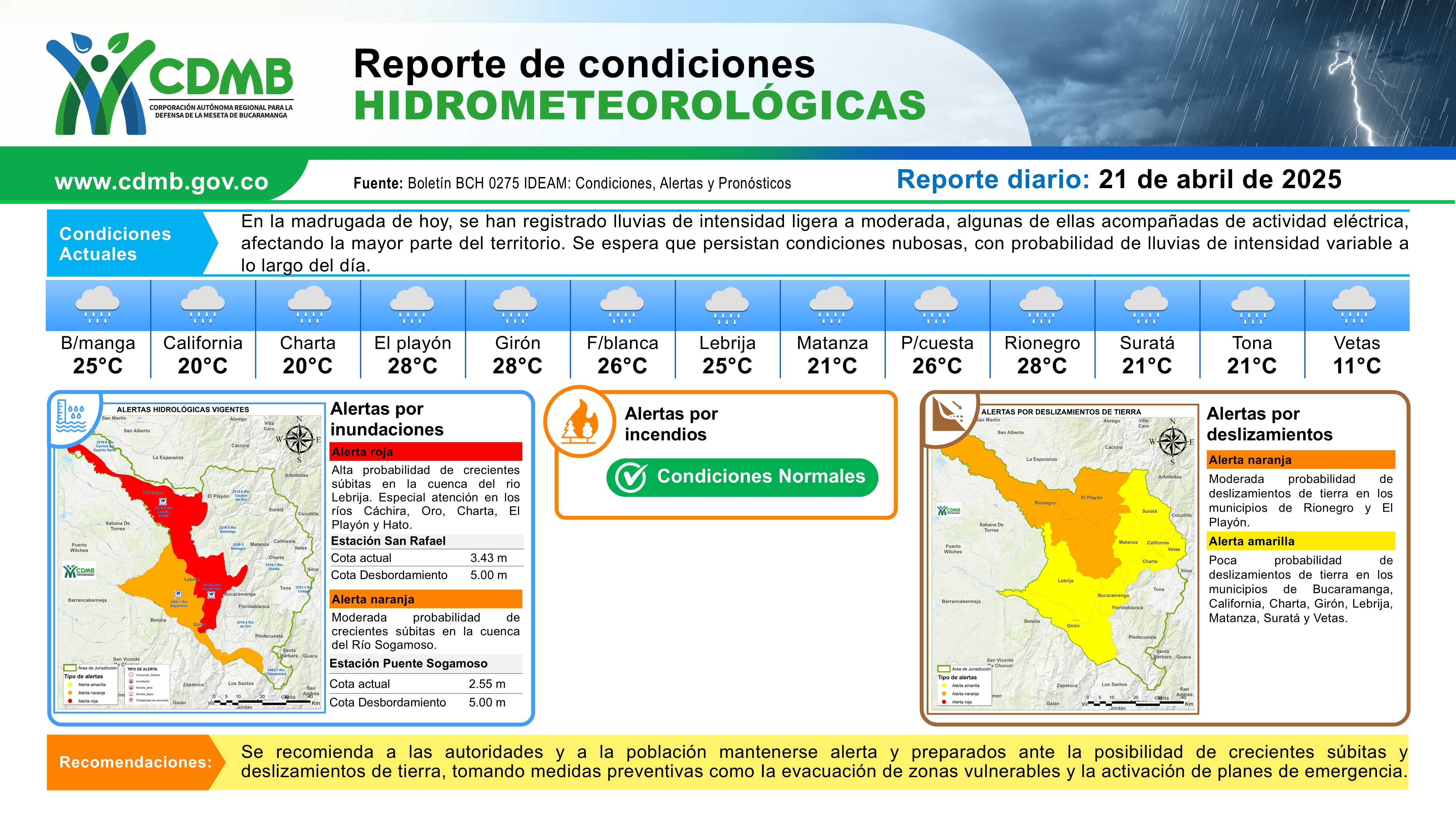 Reporte Alertas Hidrometeorológicas 25 de abril