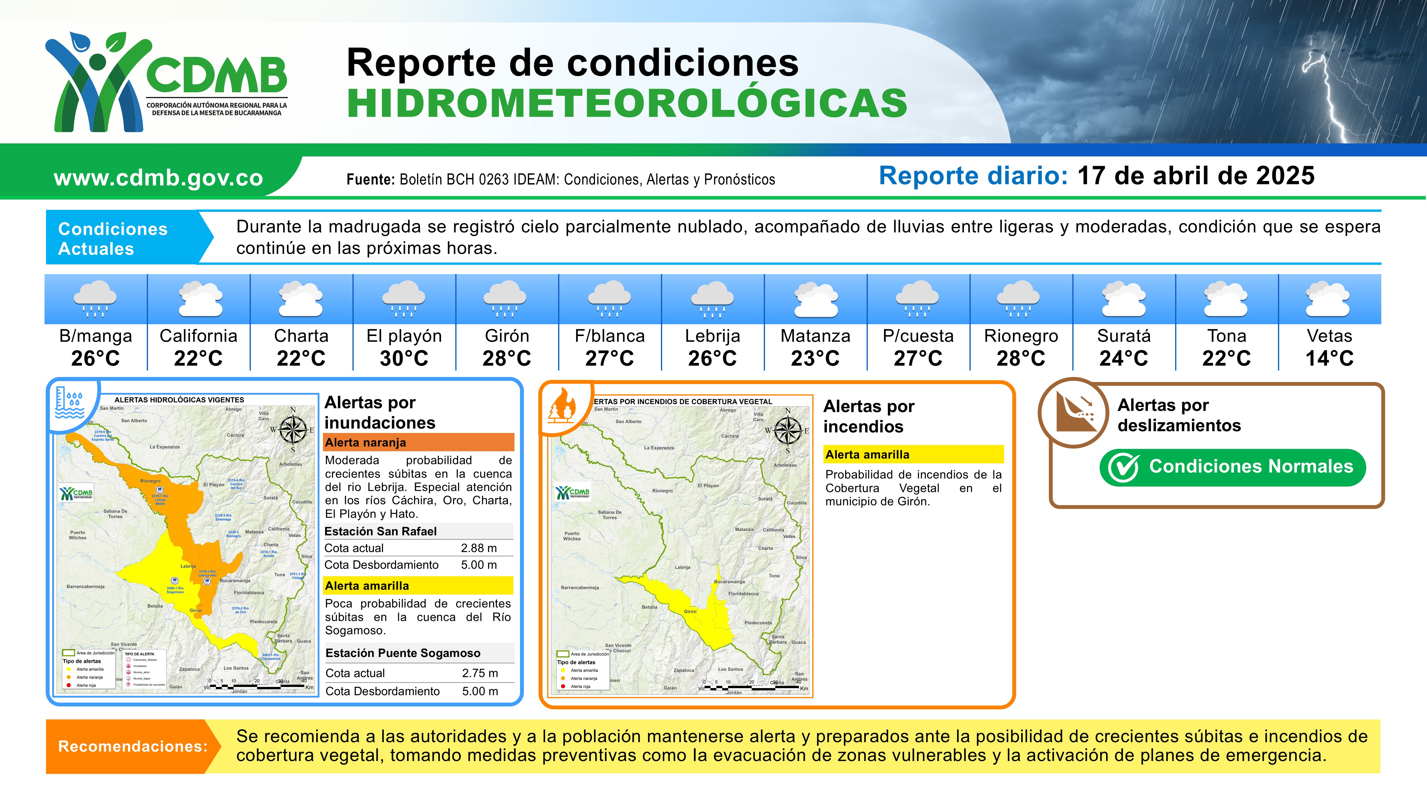 Reporte Alertas Hidrometeorológicas 17 de abril
