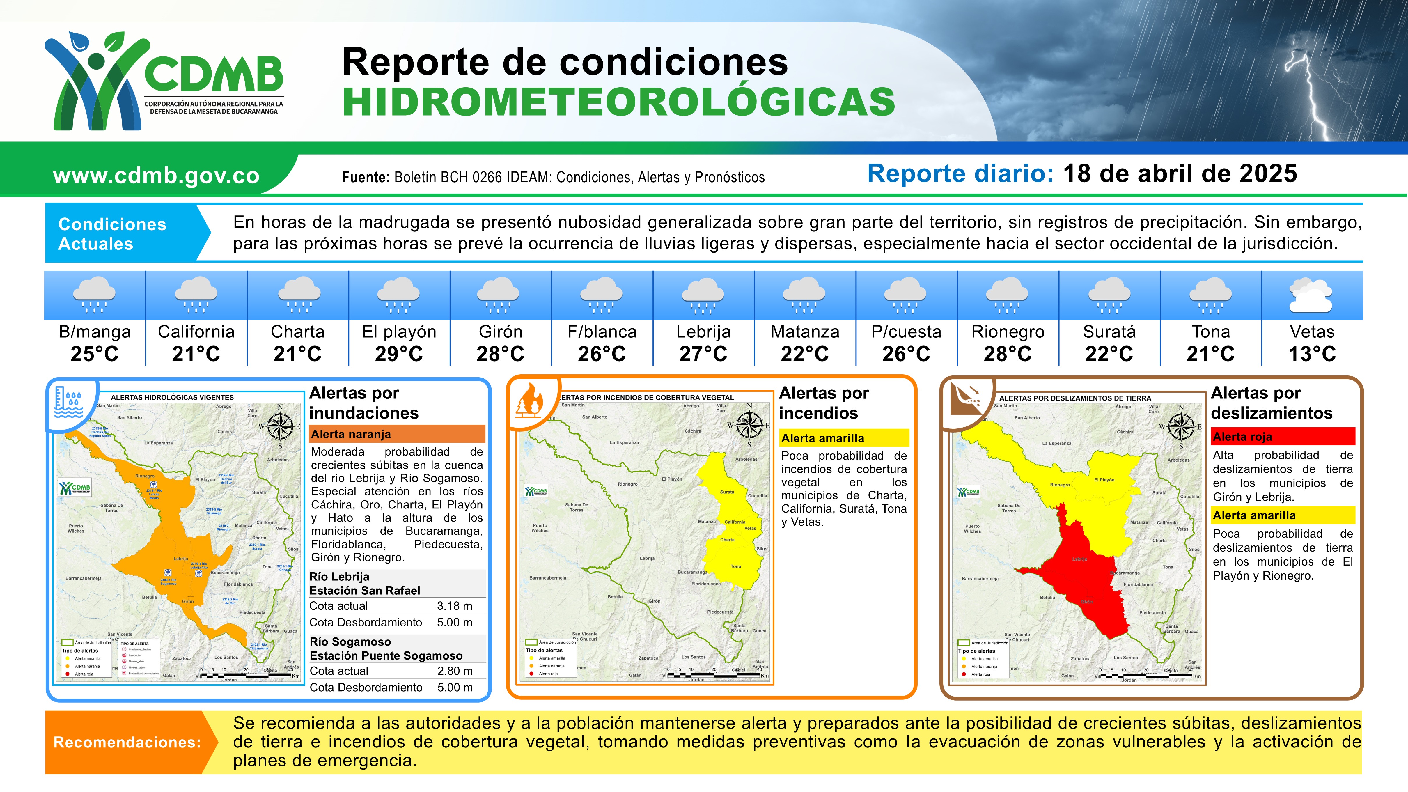Reporte Alertas Hidrometeorológicas 18 de abril