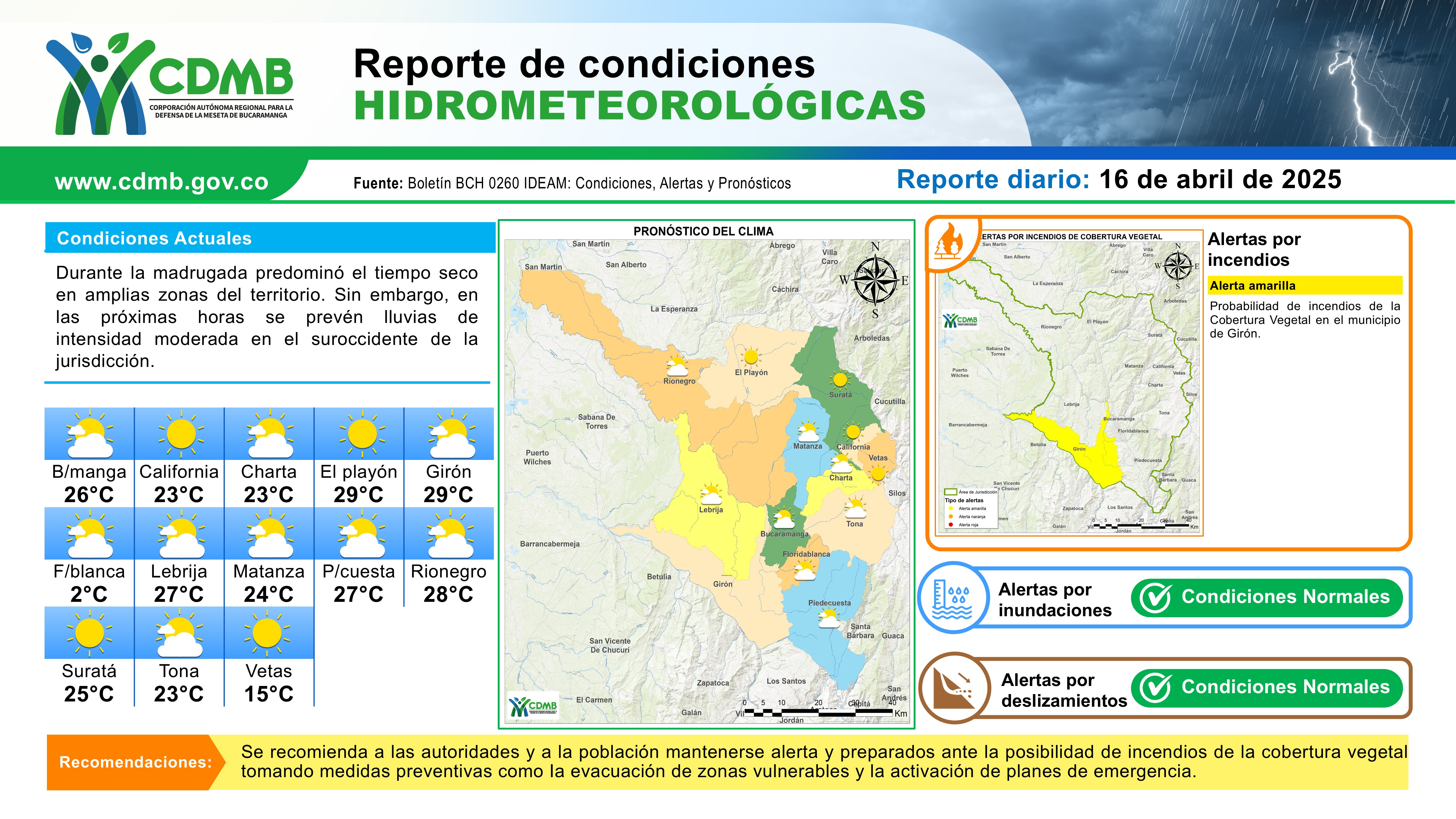 Reporte Alertas Hidrometeorológicas 16 de abril