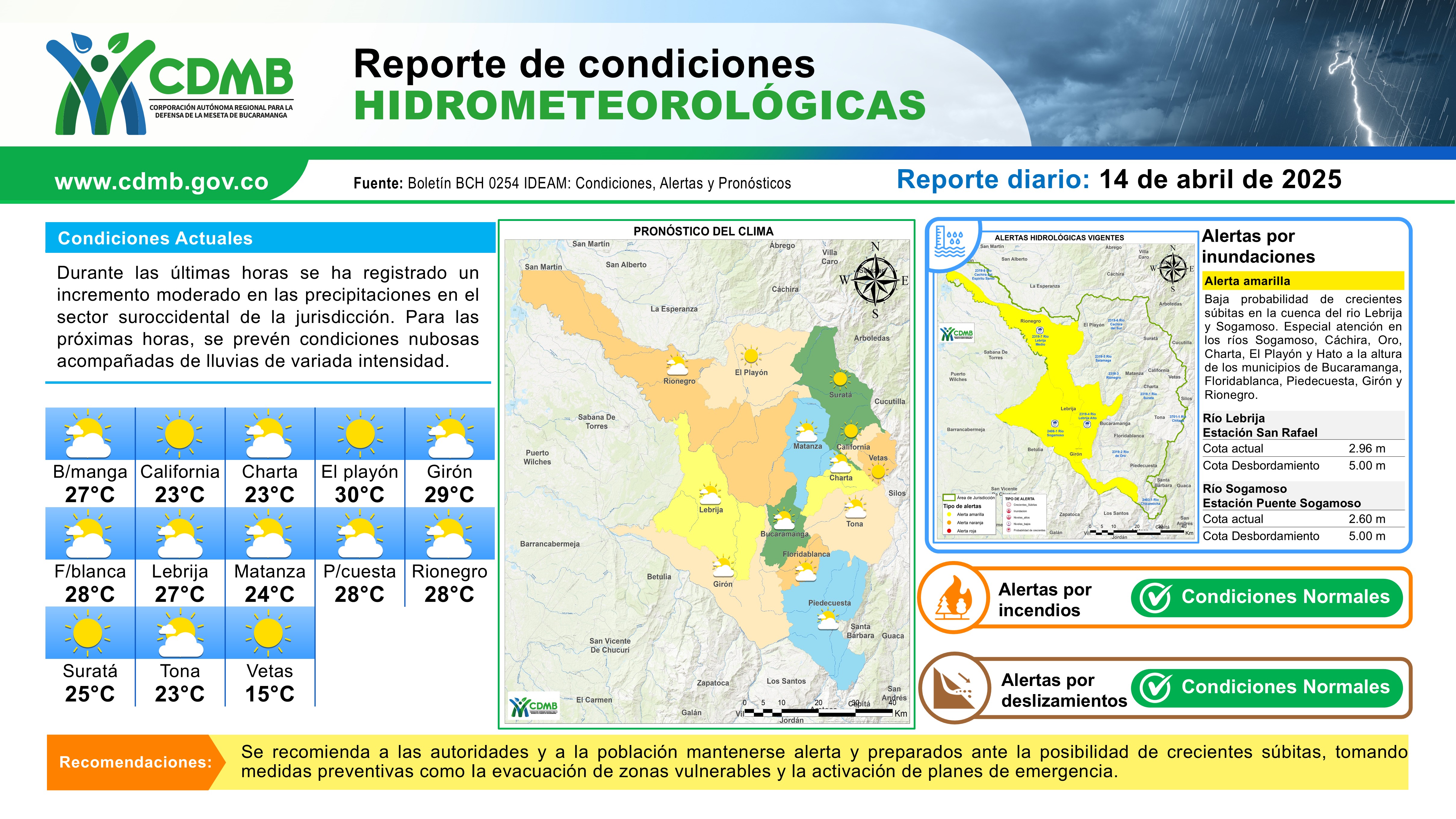 Reporte Alertas Hidrometeorológicas 14 de abril