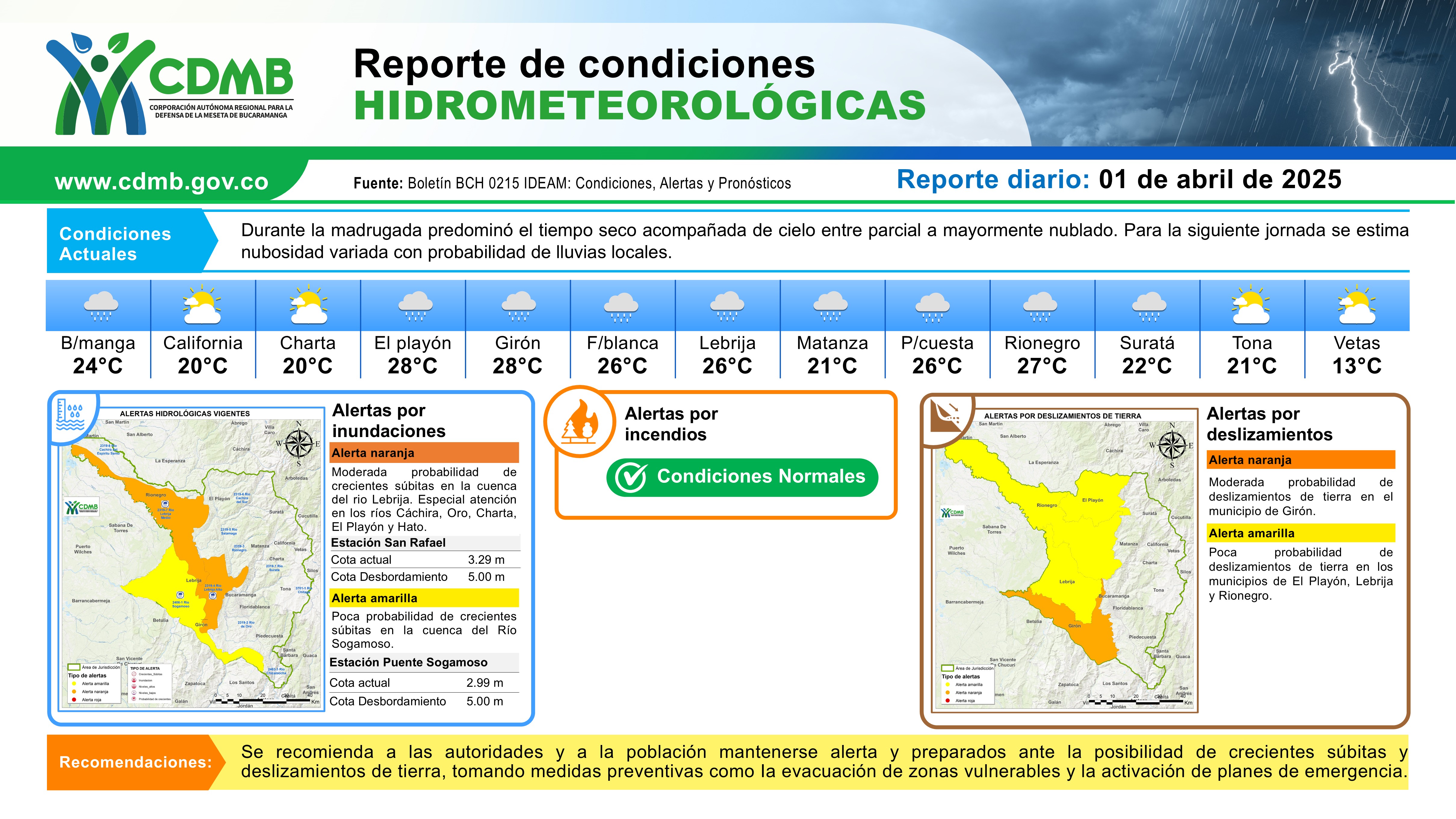 Reporte Alertas Hidrometeorológicas 01 de abril