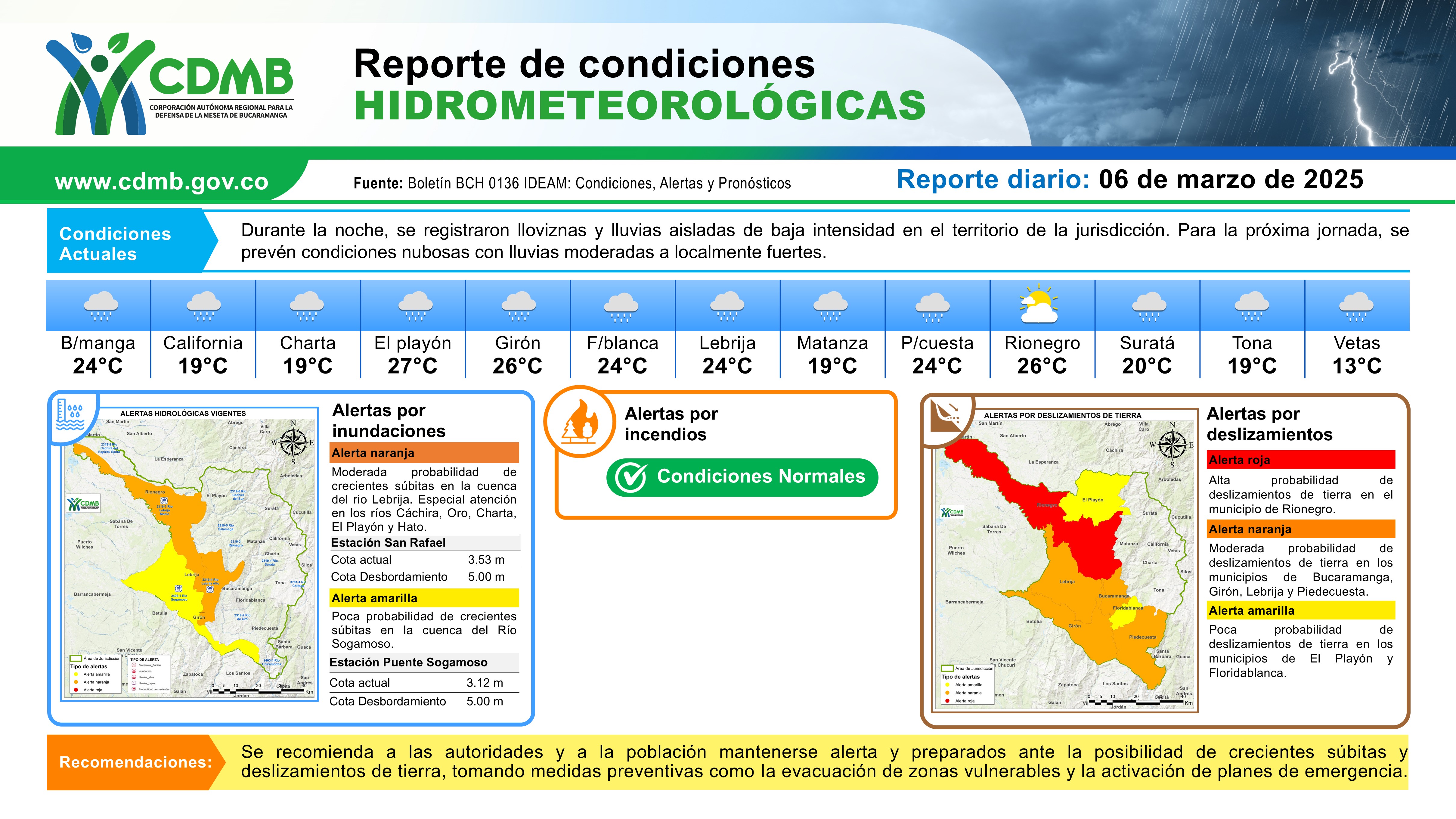 Reporte Alertas Hidrometeorológicas 06 de marzo