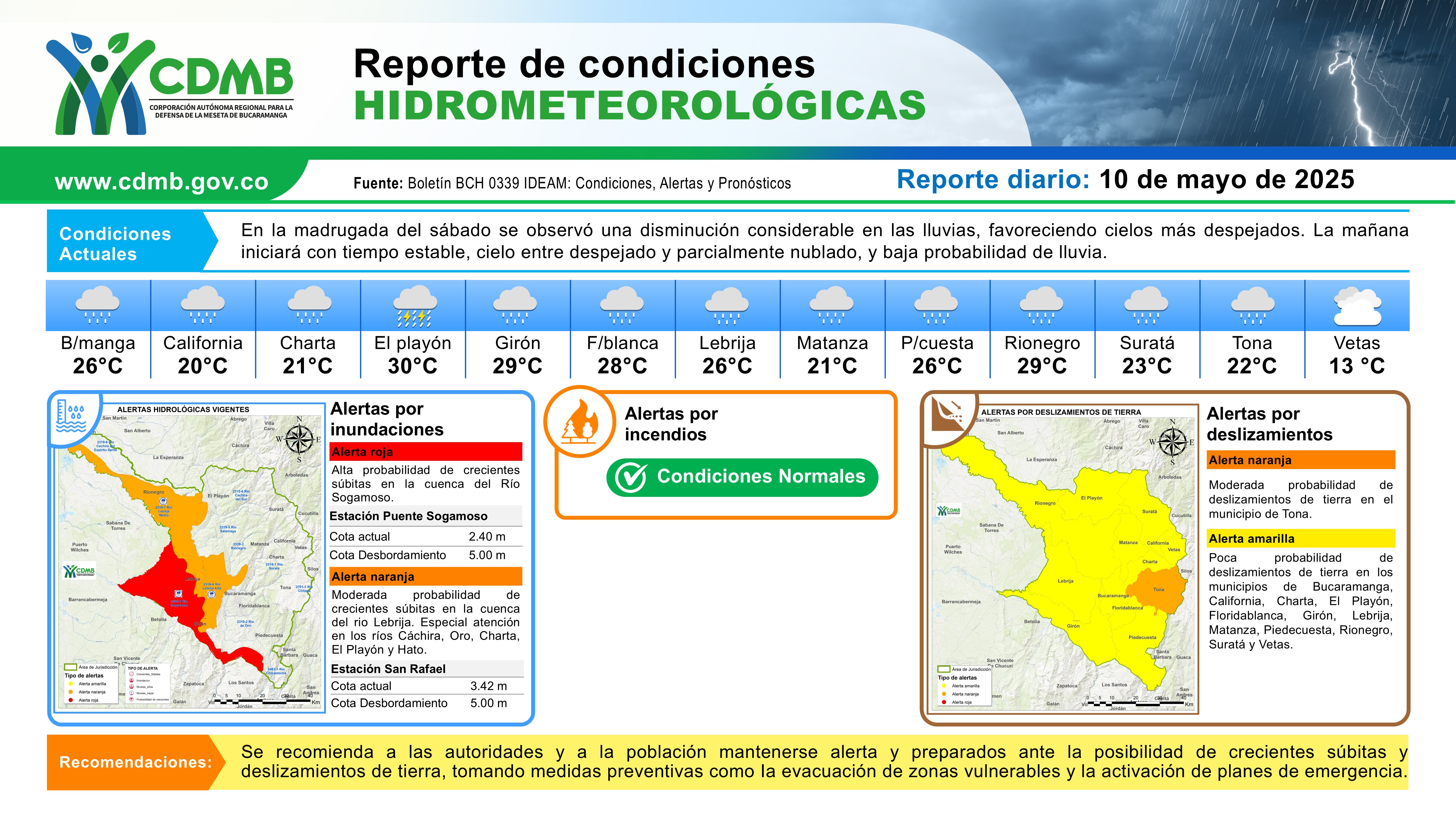 Reporte Alertas Hidrometeorológicas 10 de mayo