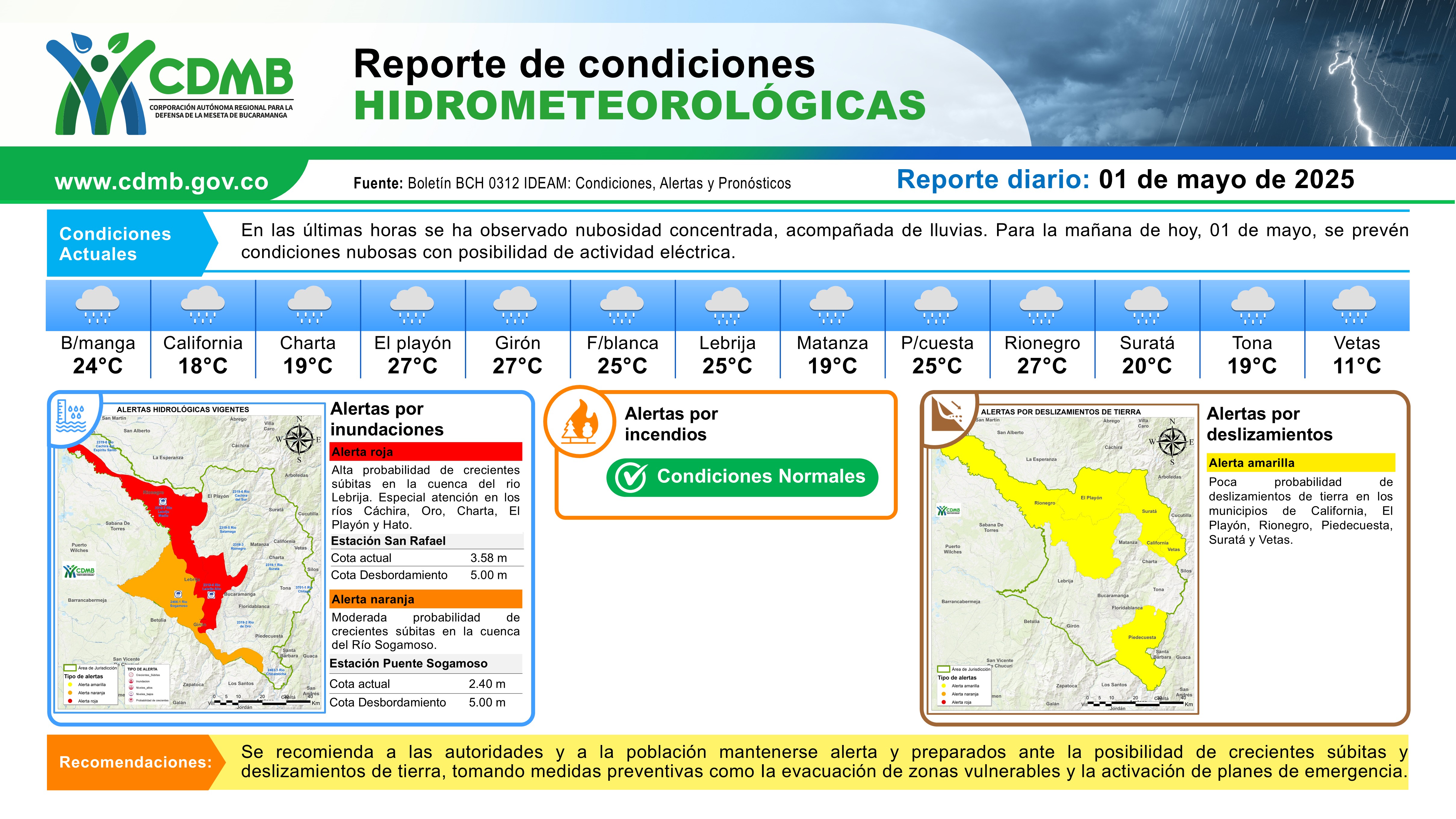 Reporte Alertas Hidrometeorológicas 01 de mayo