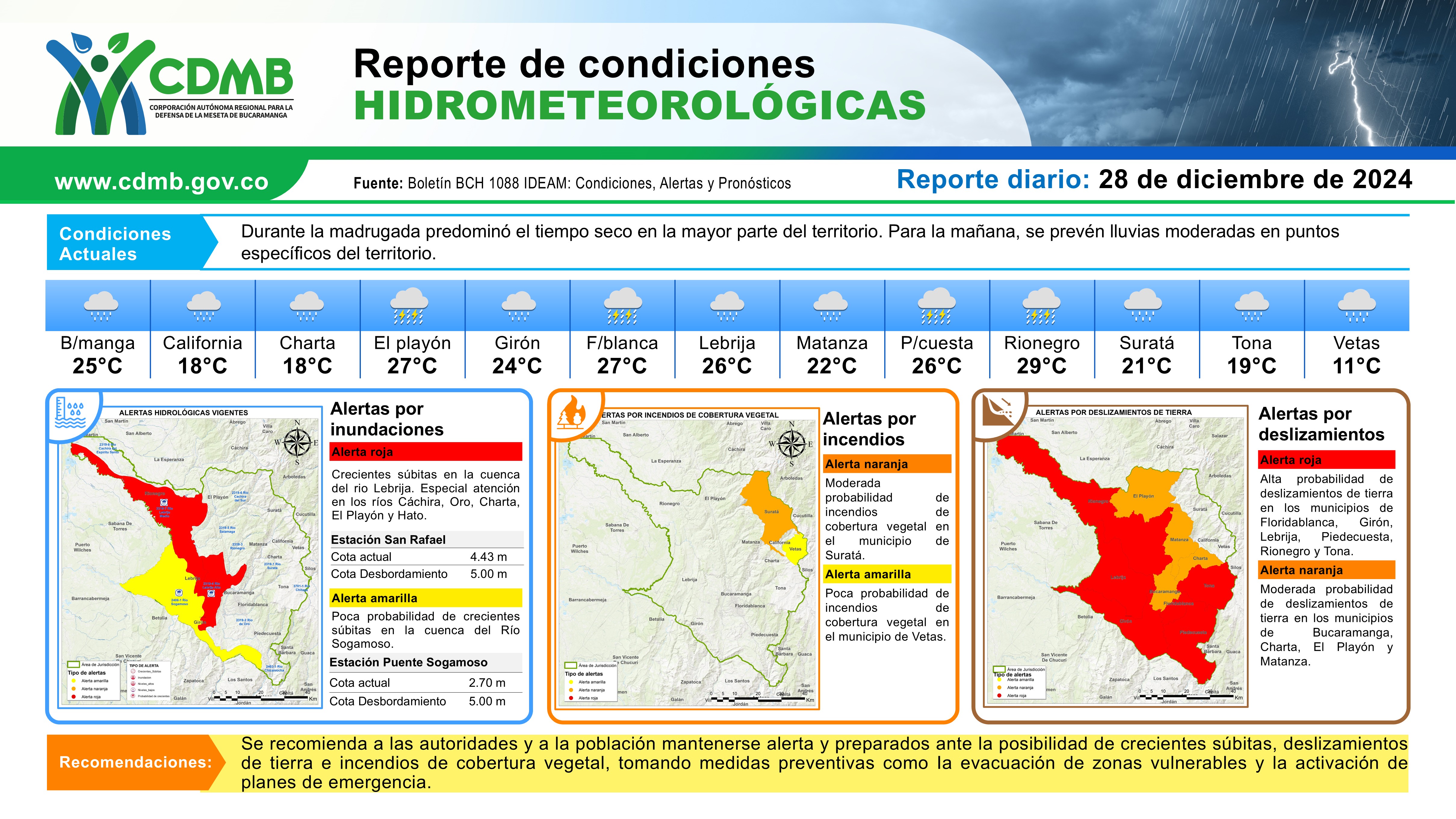 Reporte Alertas Hidrometeorológicas 28 de diciembre
