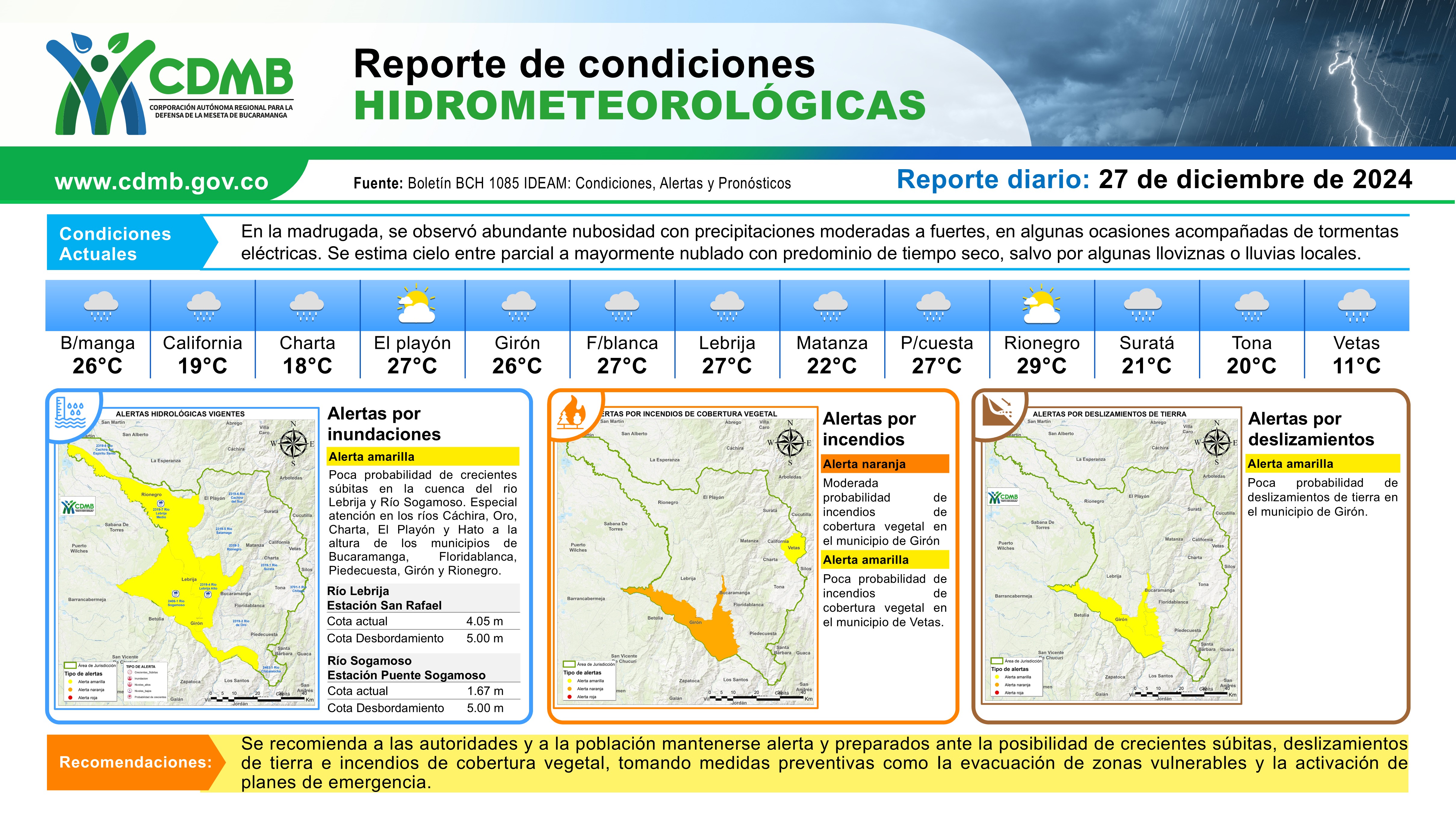 Reporte Alertas Hidrometeorológicas 27 de diciembre