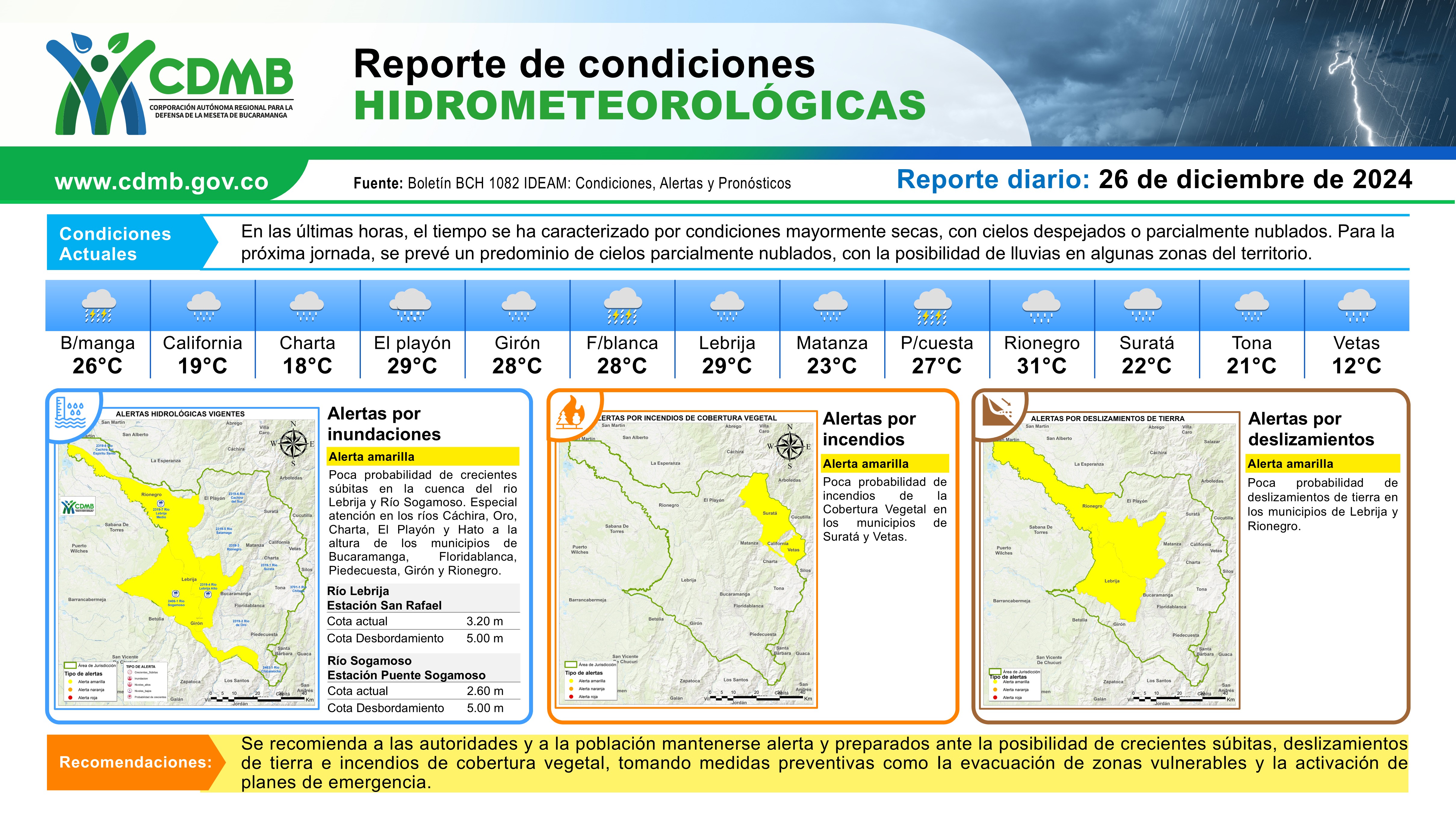Reporte Alertas Hidrometeorológicas 26 de diciembre