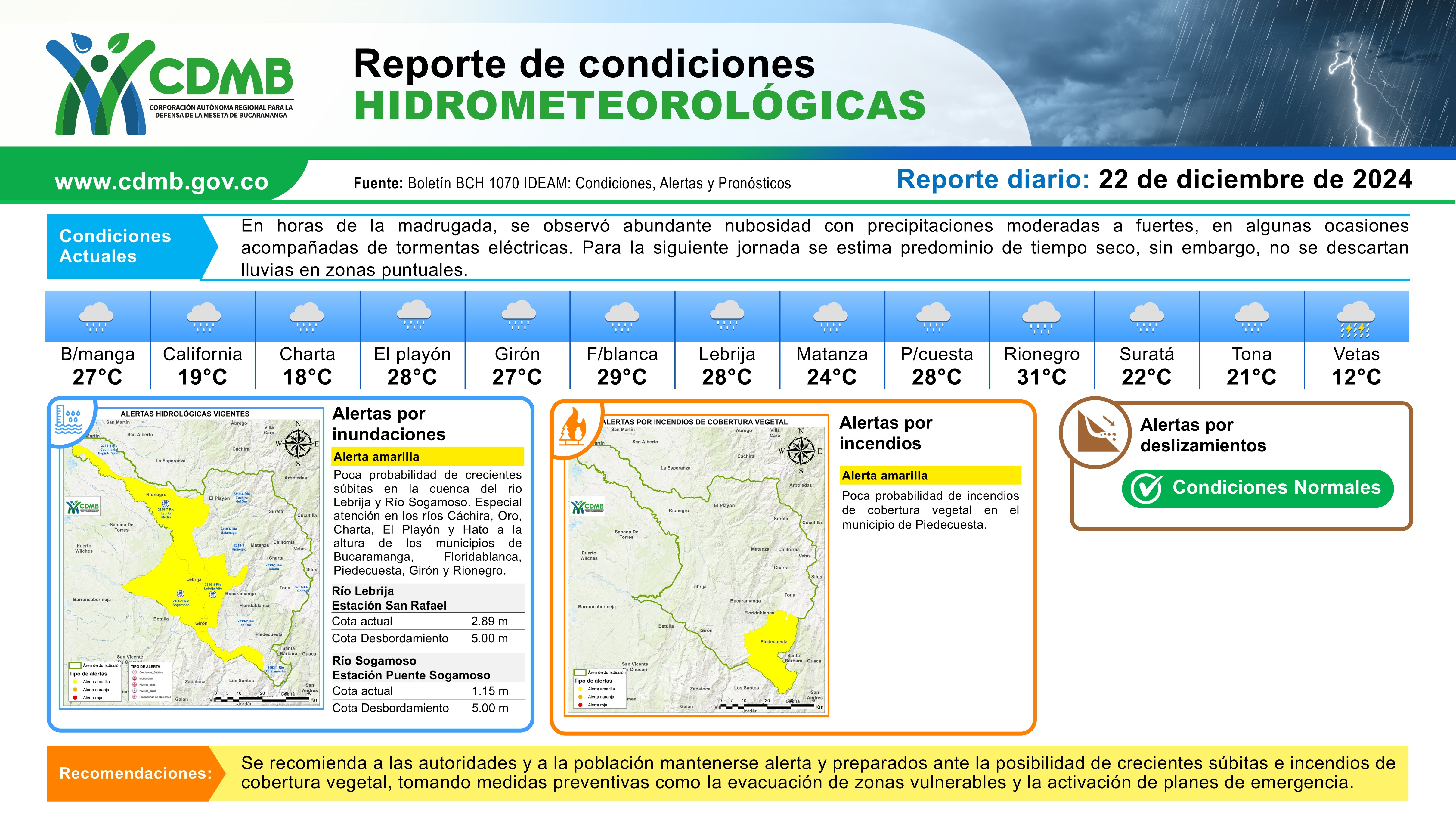 Reporte Alertas Hidrometeorológicas 22 de diciembre