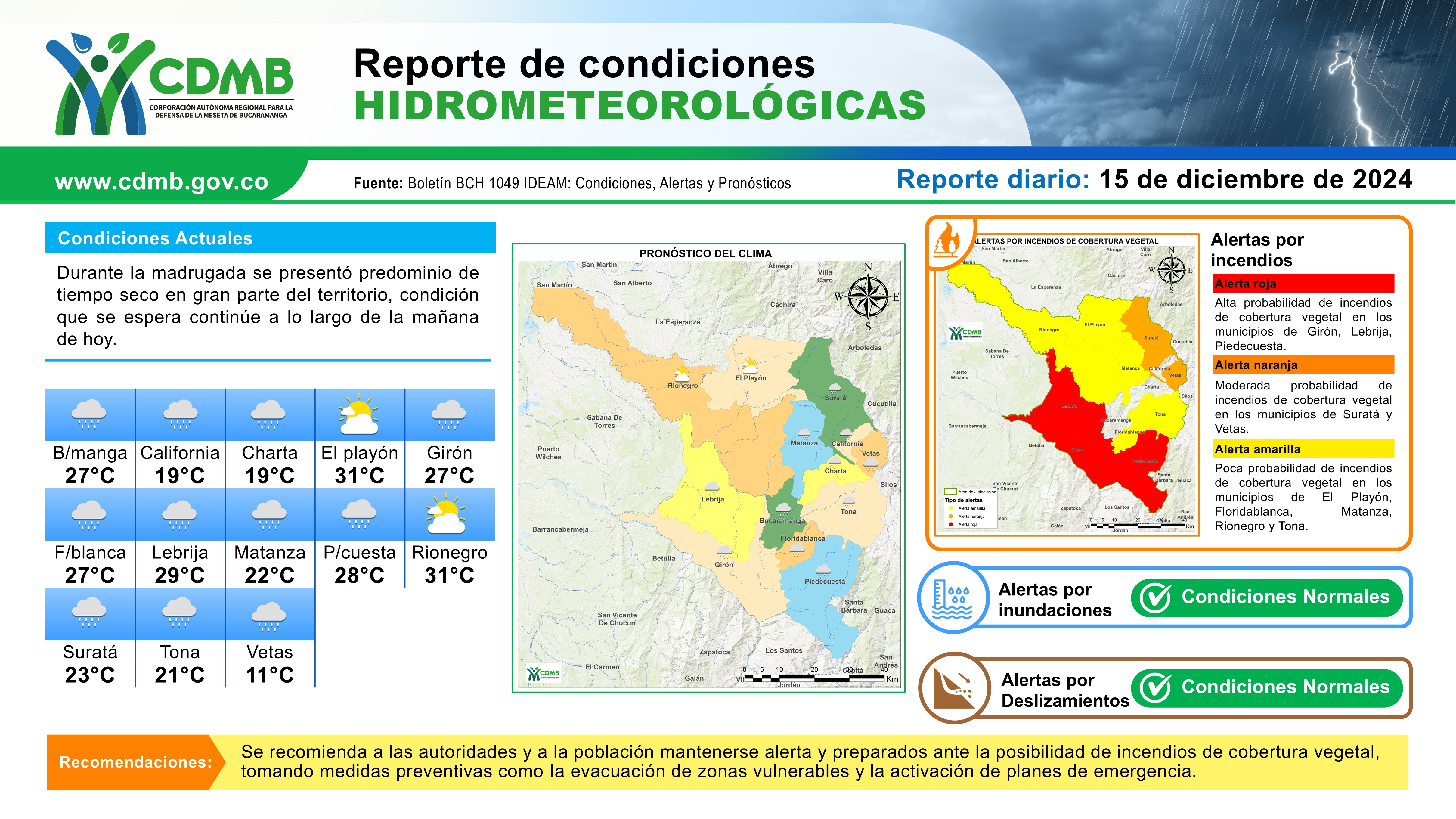 Reporte Alertas Hidrometeorológicas 15 de diciembre