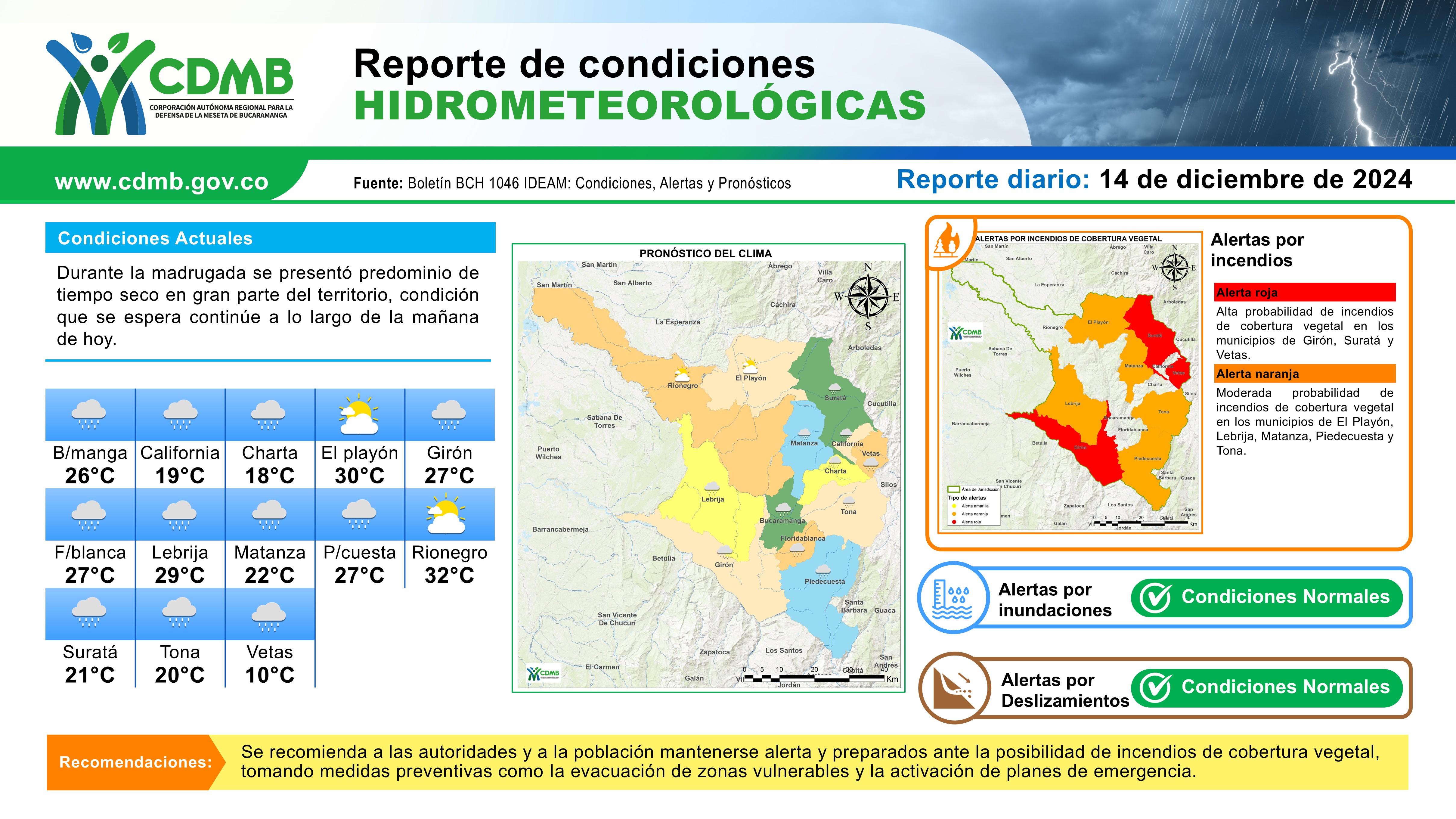 Reporte Alertas Hidrometeorológicas 14 de diciembre