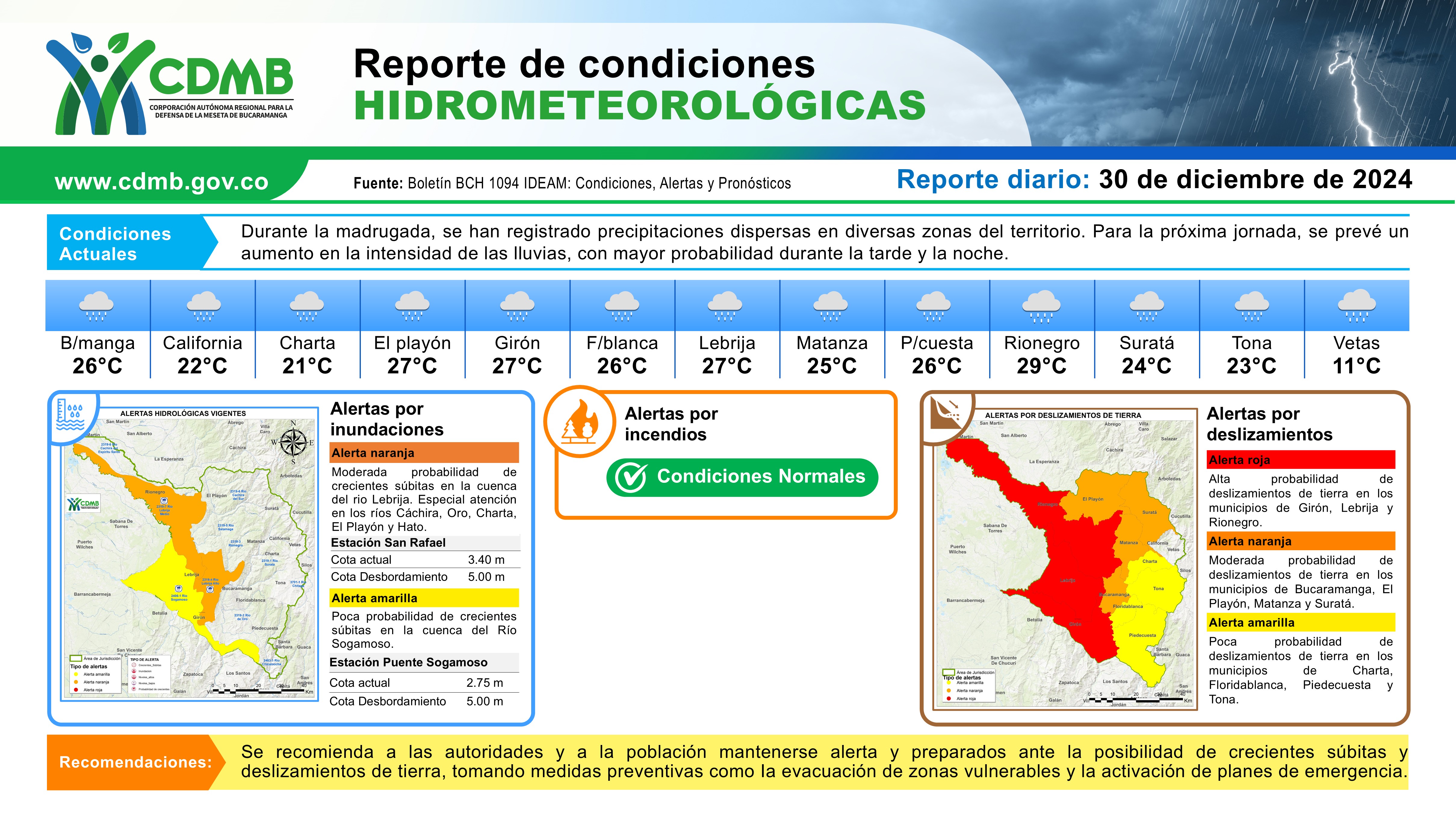 Reporte Alertas Hidrometeorológicas 30 de diciembre