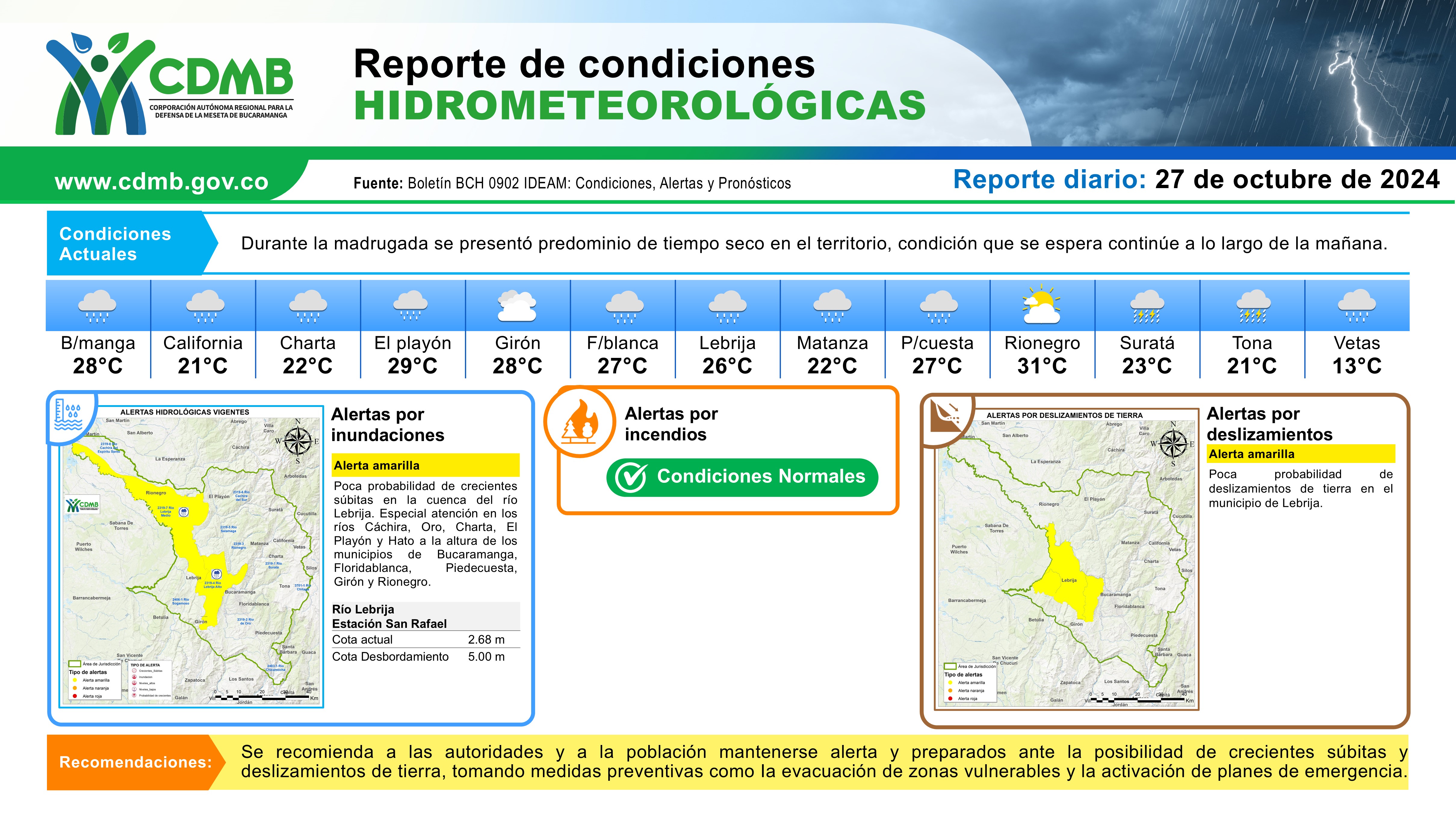 Reporte Alertas Hidrometeorológicas 27 de octubre