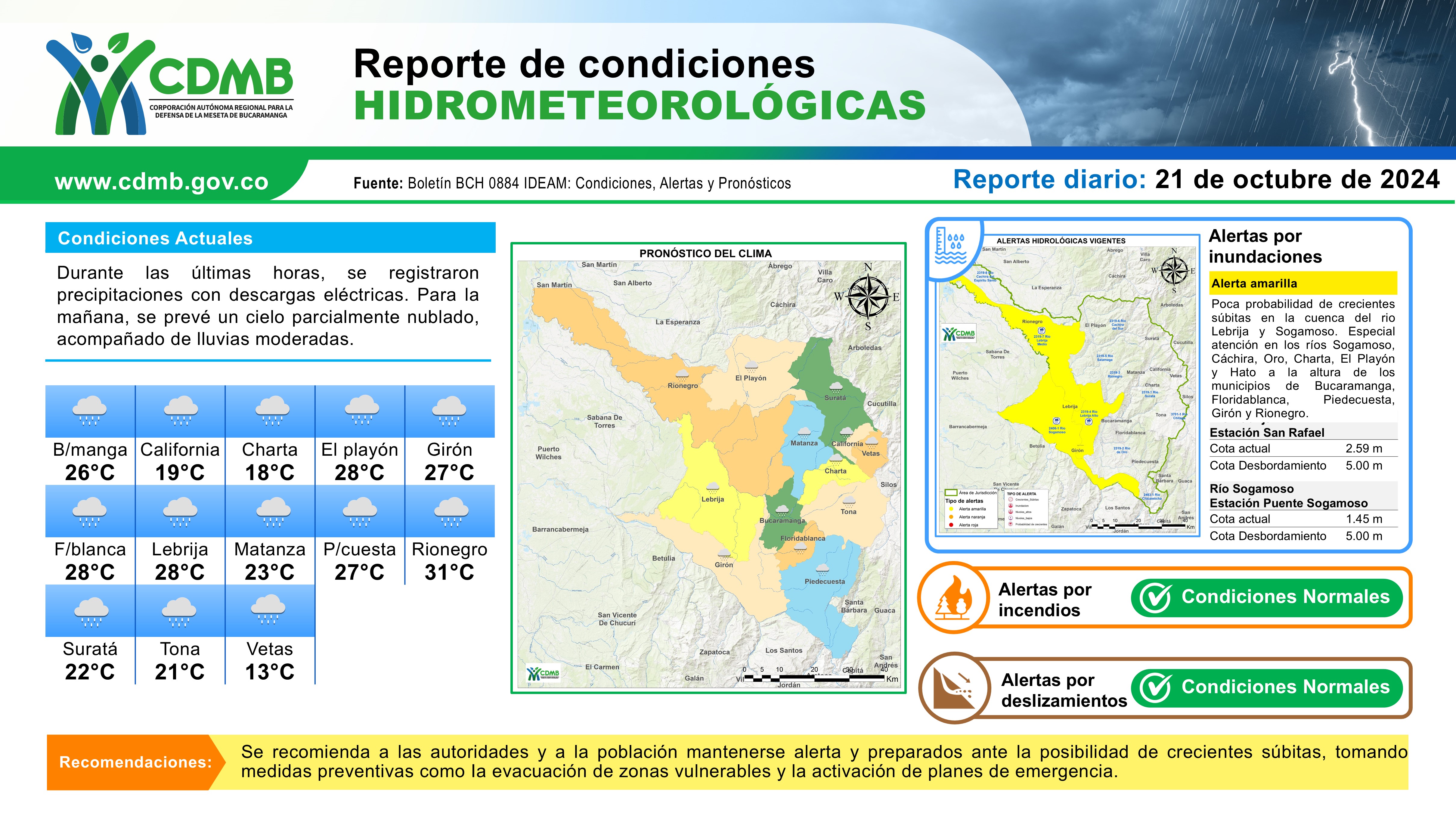 Reporte Alertas Hidrometeorológicas 21 de octubre