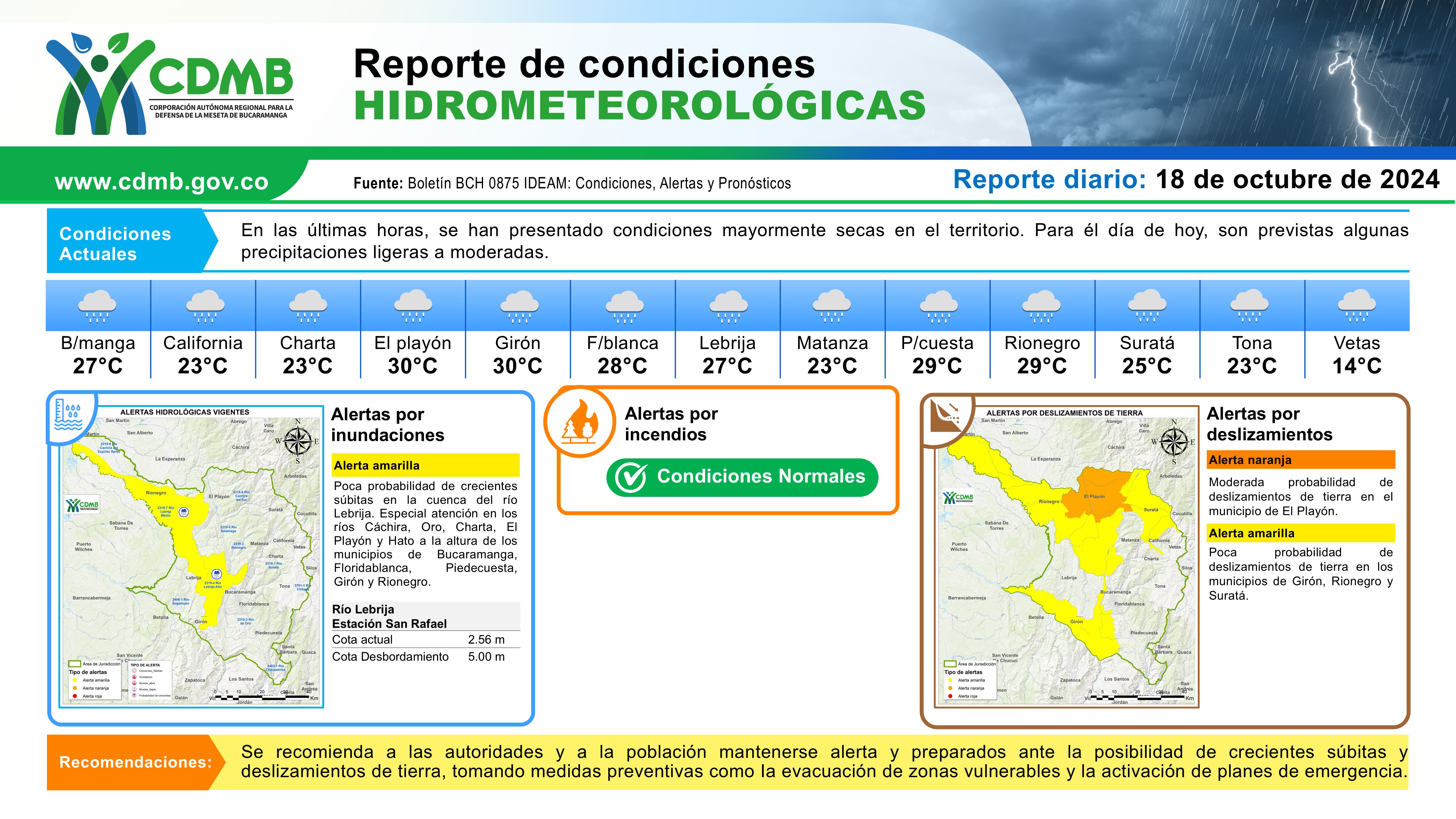 Reporte Alertas Hidrometeorológicas 18 de octubre