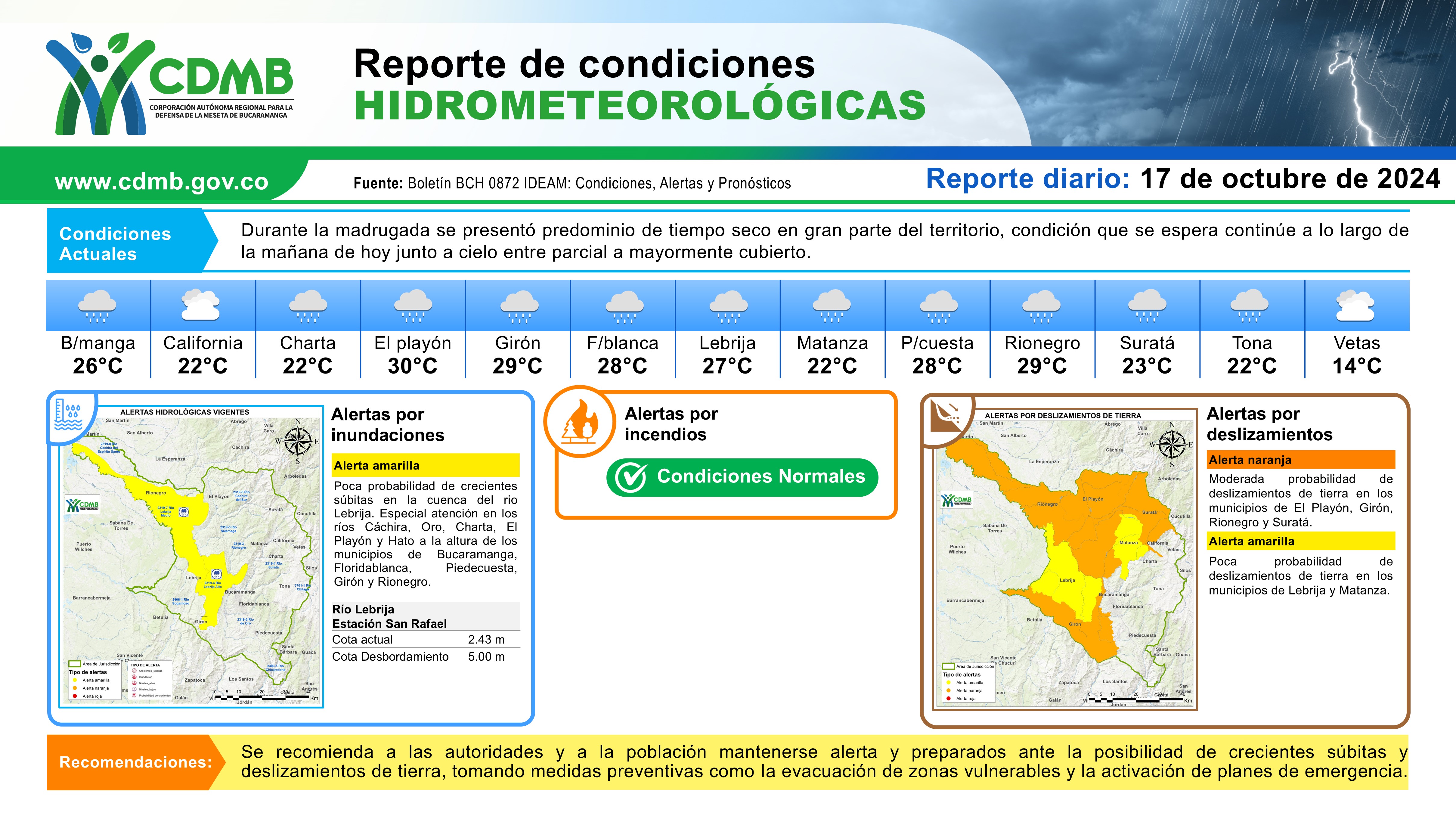 Reporte Alertas Hidrometeorológicas 17 de octubre