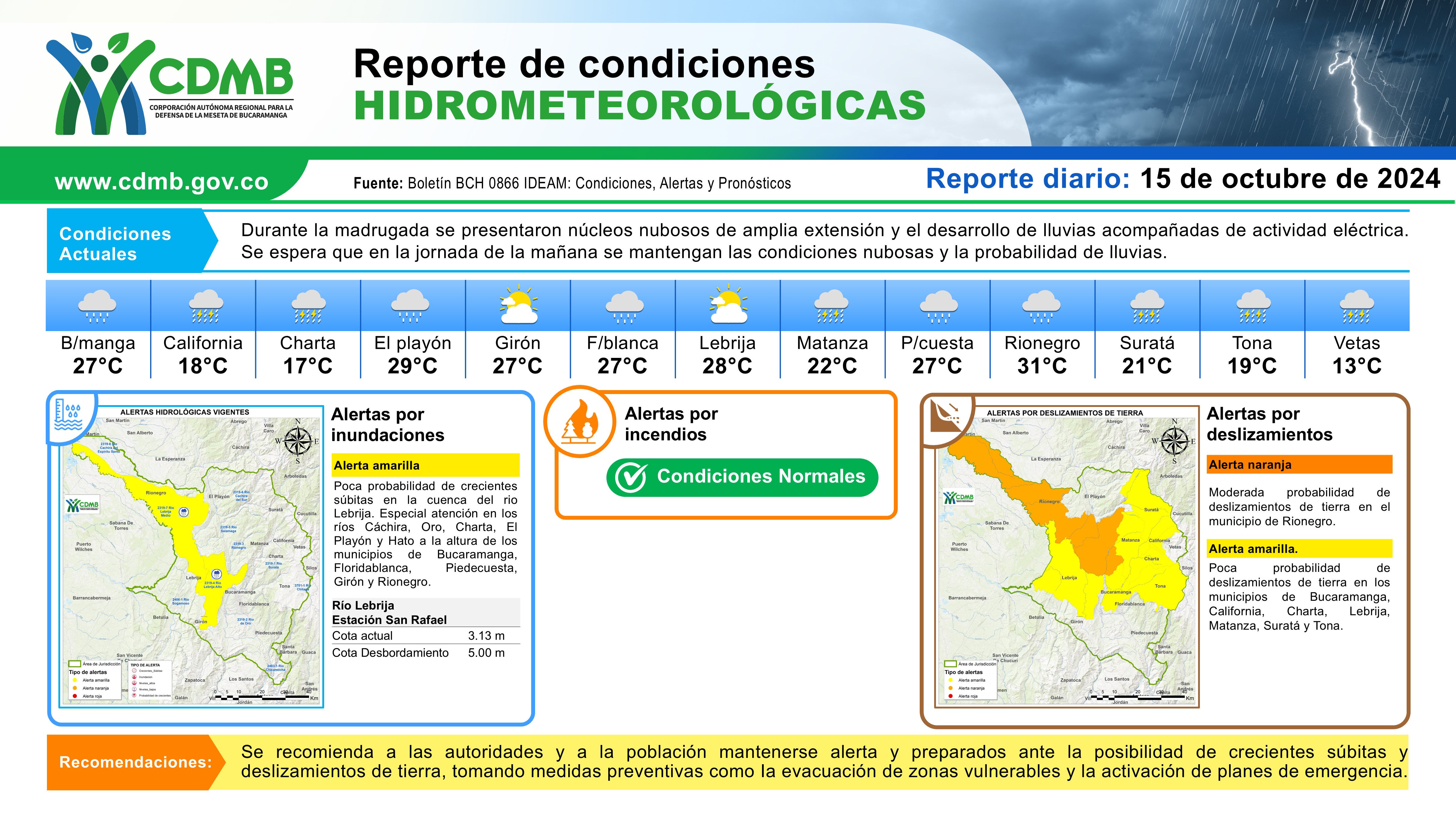 Reporte Alertas Hidrometeorológicas 15 de octubre