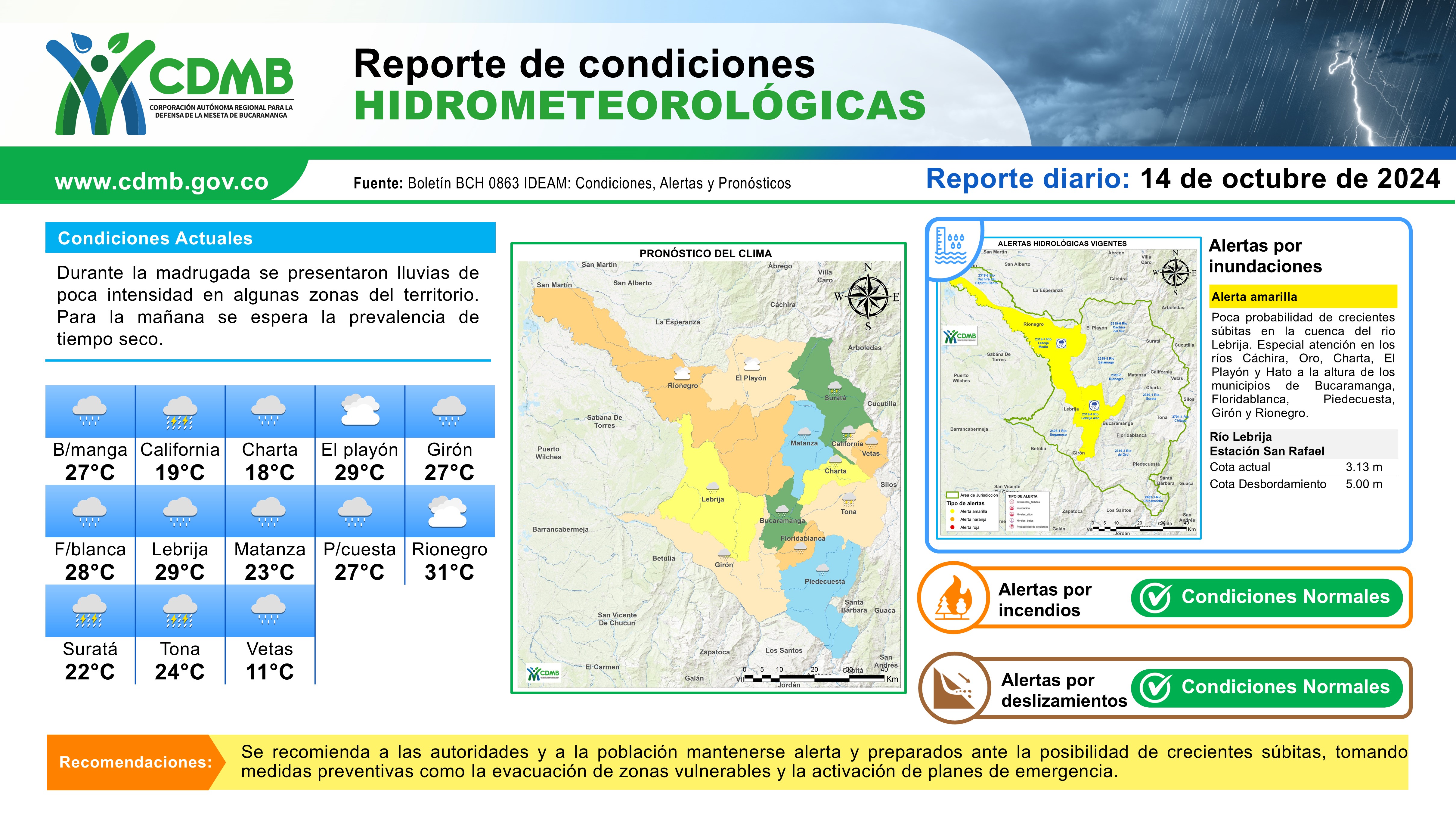 Reporte Alertas Hidrometeorológicas 14 de octubre