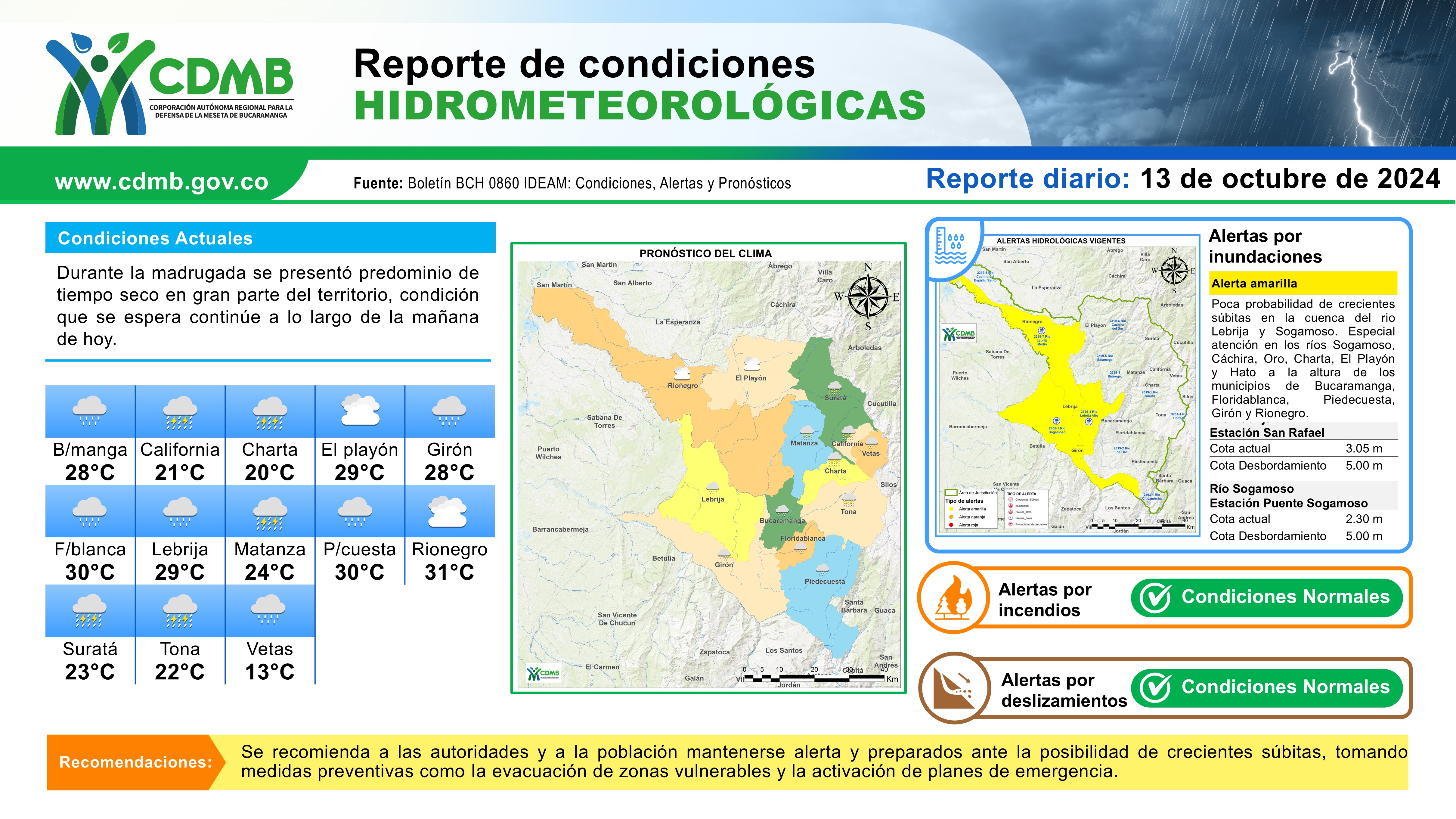 Reporte Alertas Hidrometeorológicas 13 de octubre