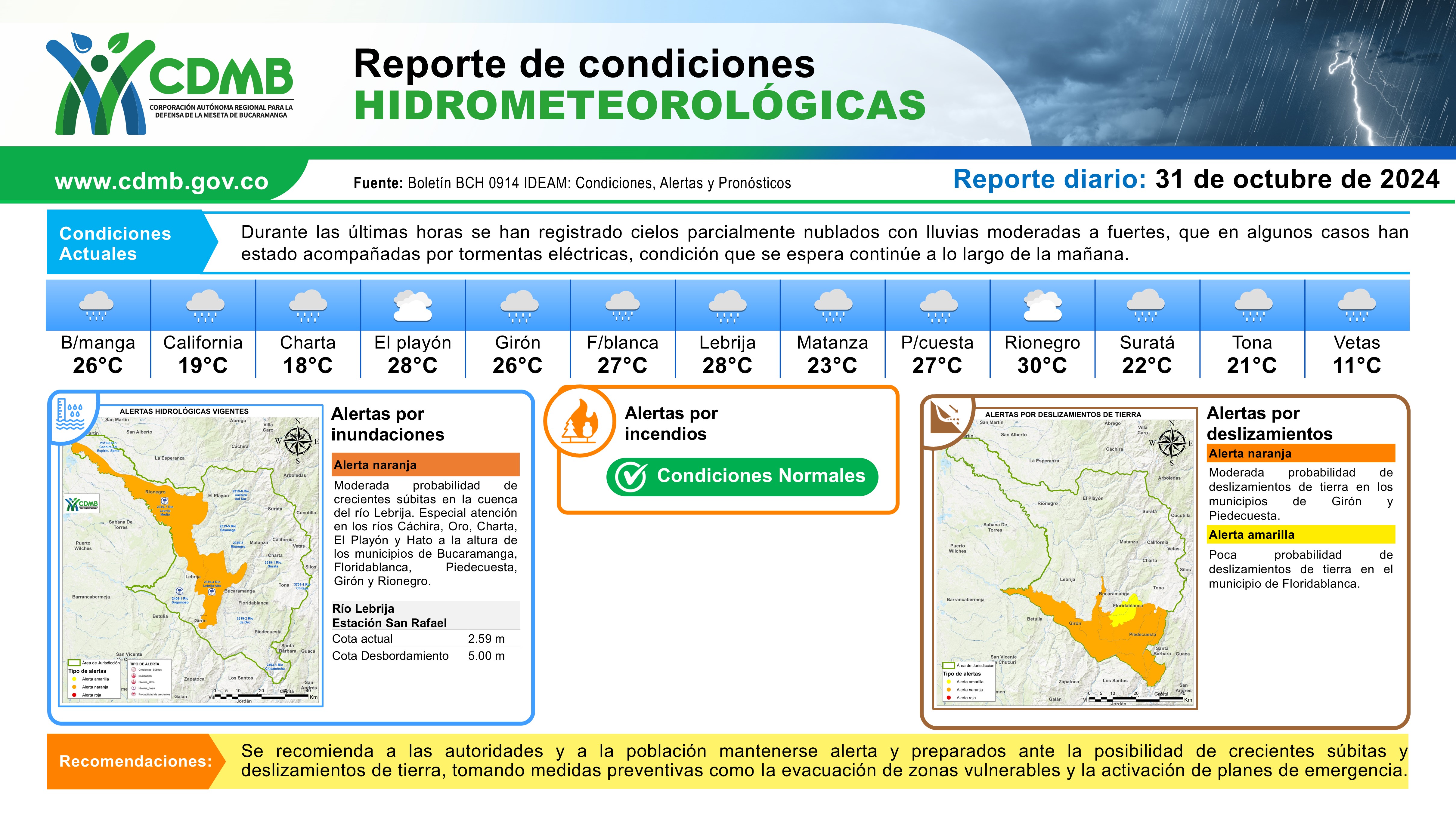 Reporte Alertas Hidrometeorológicas 31 de octubre
