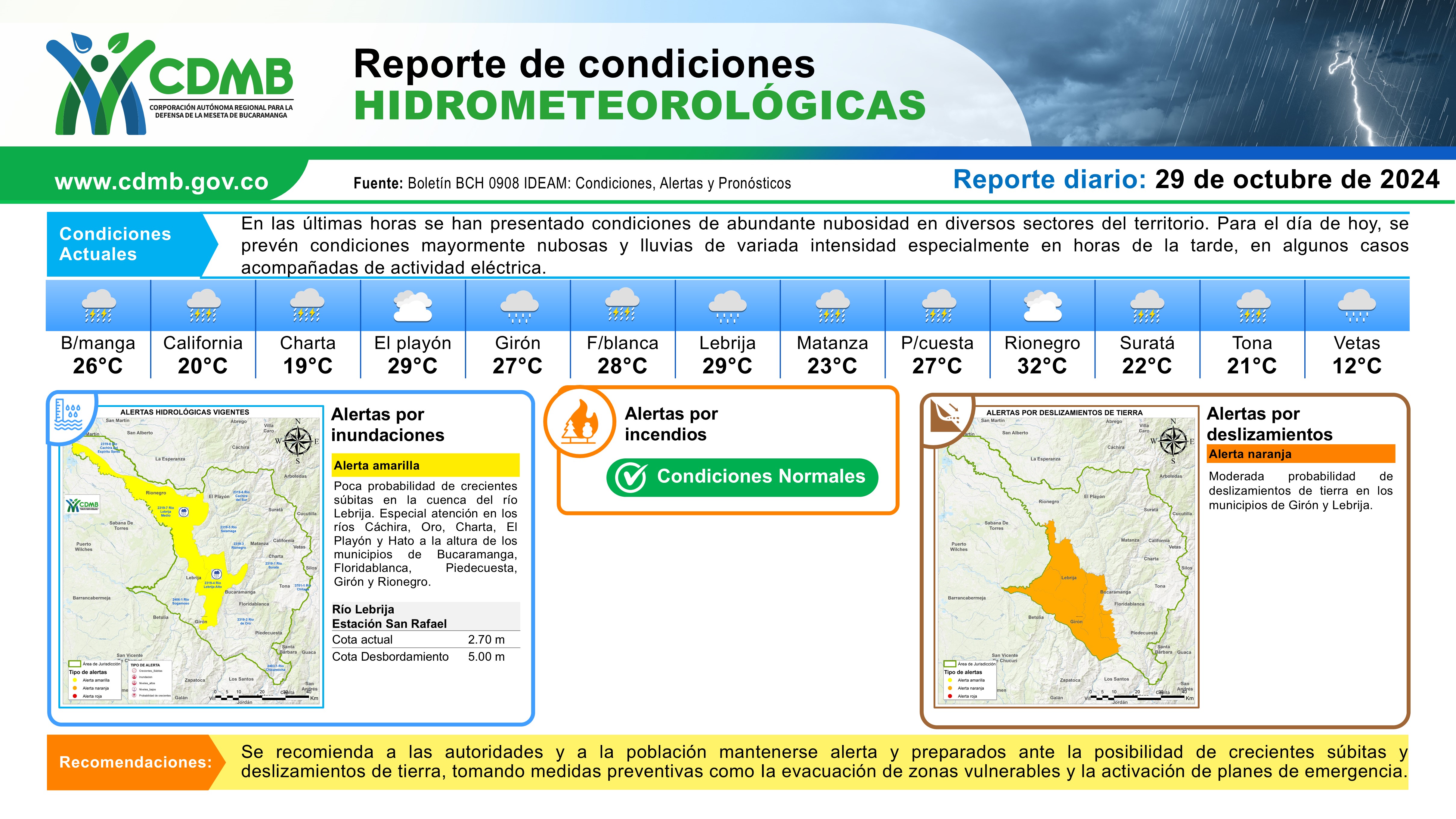 Reporte Alertas Hidrometeorológicas 29 de octubre