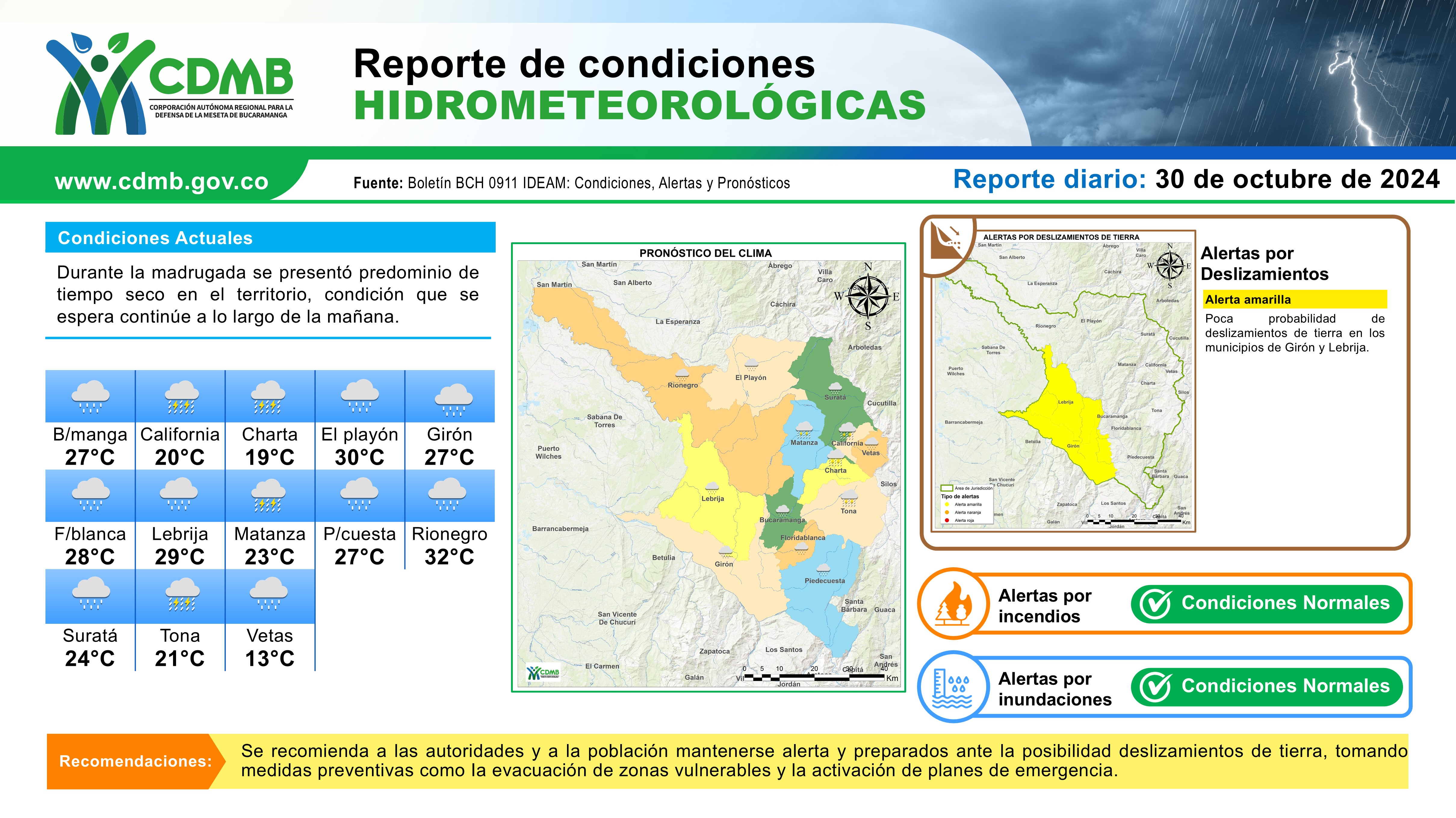 Reporte Alertas Hidrometeorológicas 30 de octubre