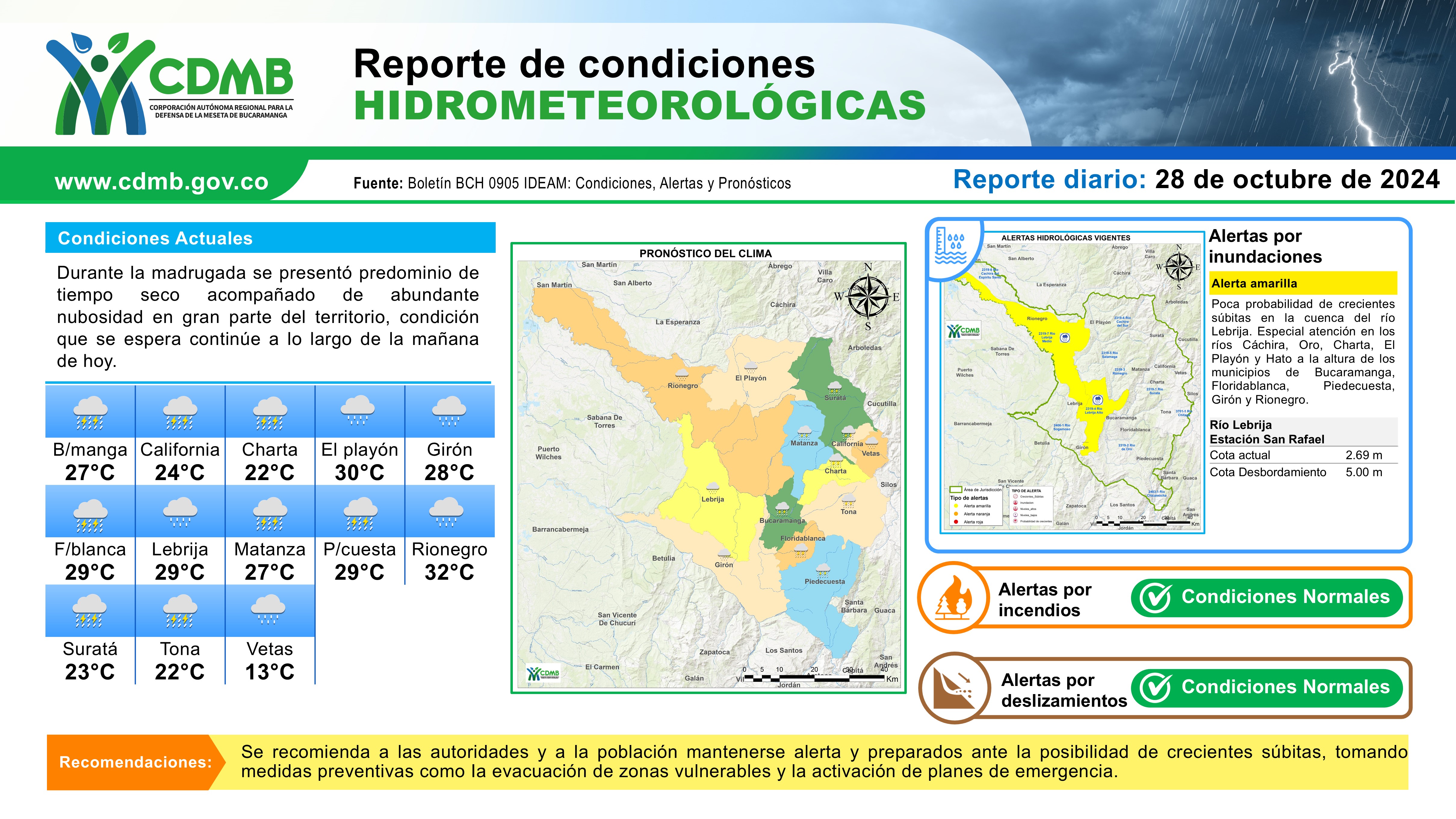Reporte Alertas Hidrometeorológicas 28 de octubre