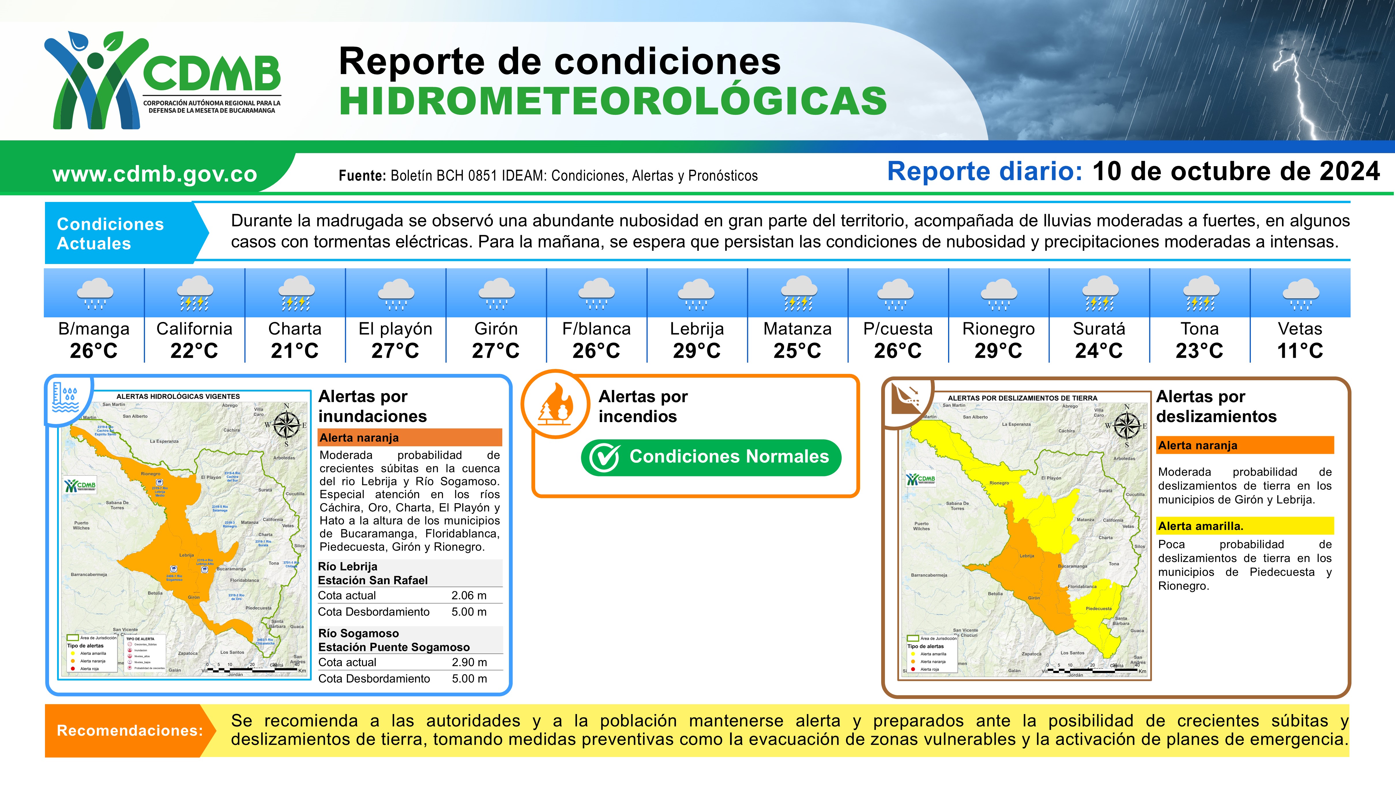 Reporte Alertas Hidrometeorológicas 10 de octubre