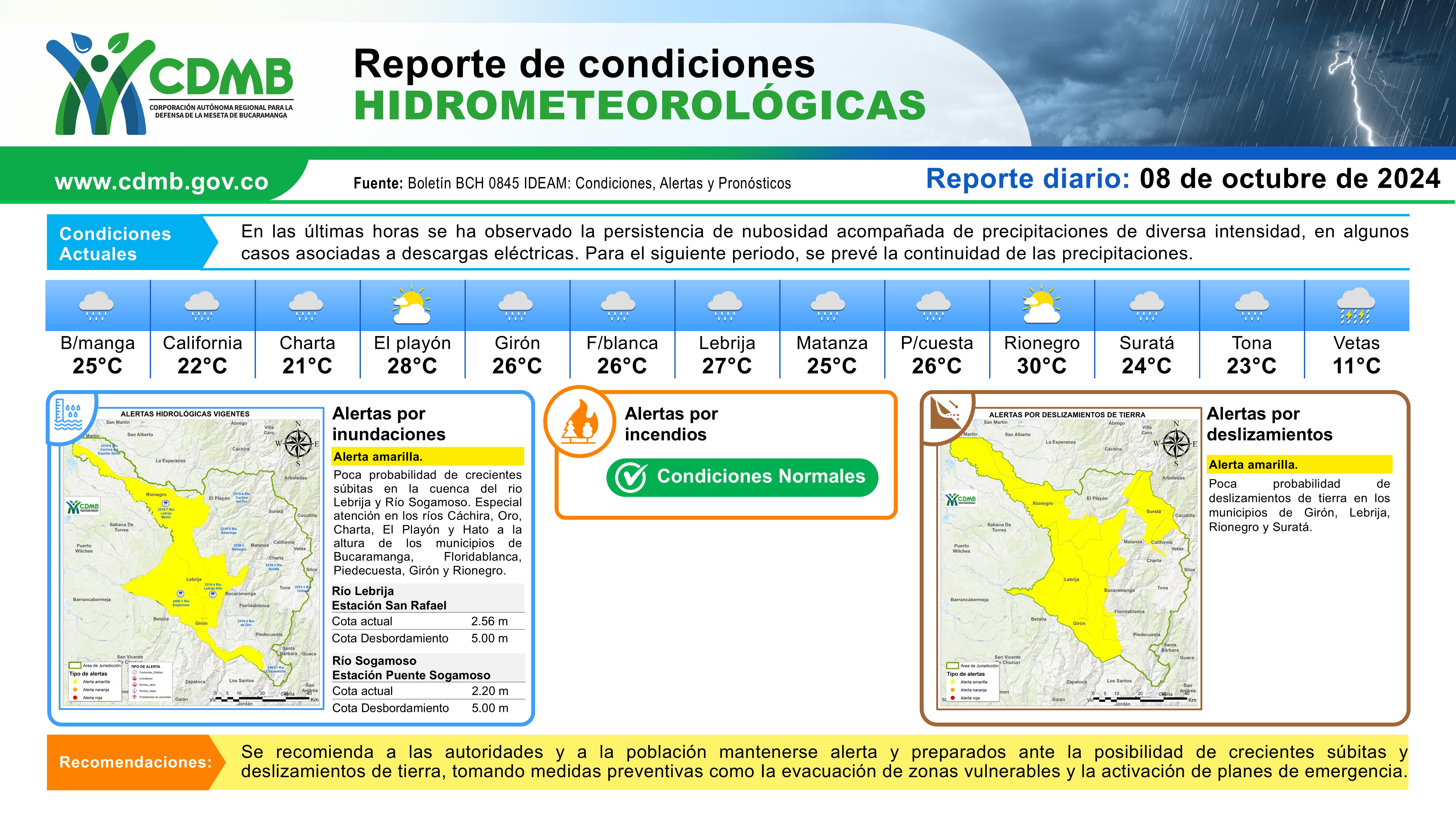 Reporte Alertas Hidrometeorológicas 08 de octubre