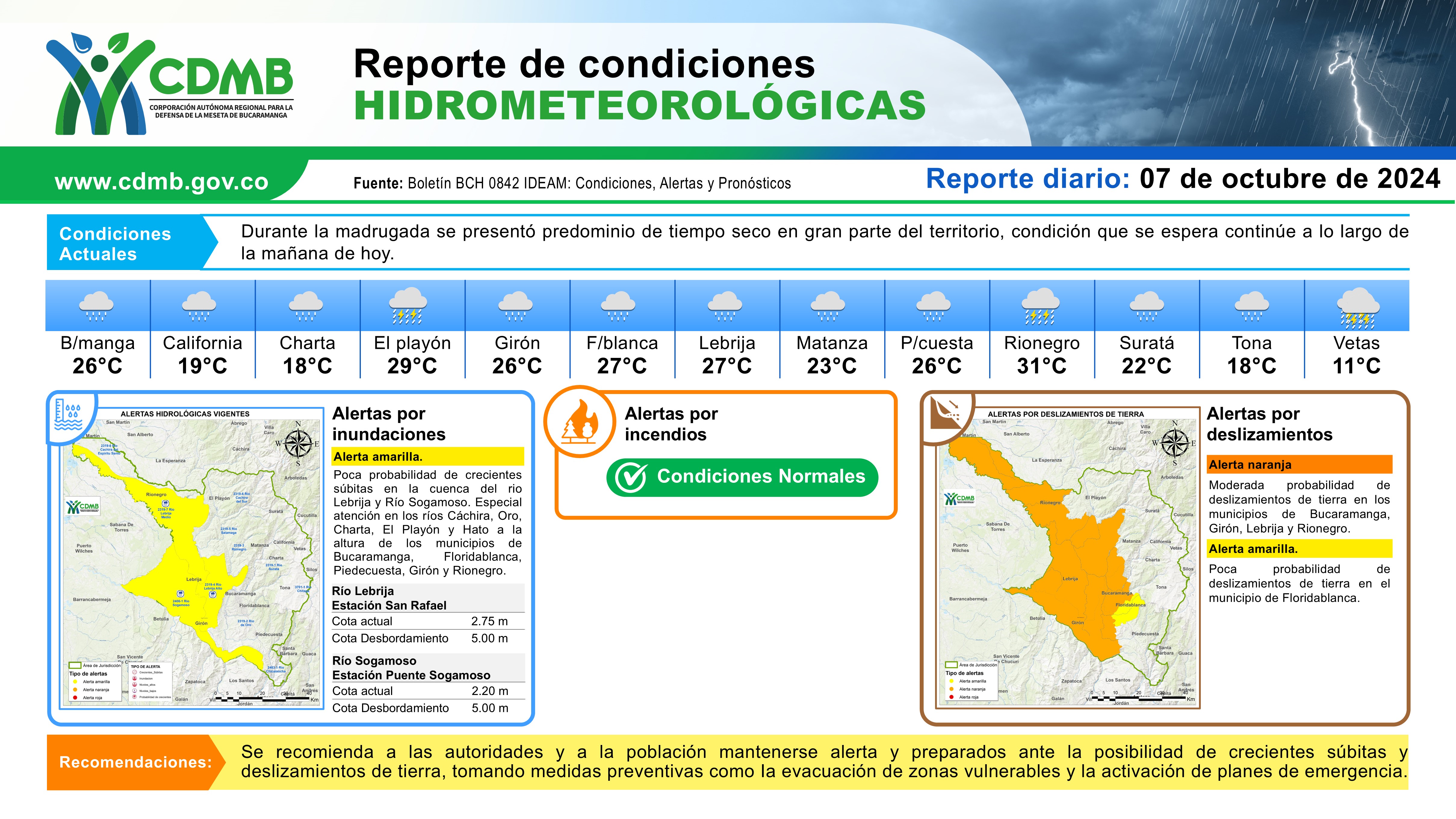 Reporte Alertas Hidrometeorológicas 07 de octubre