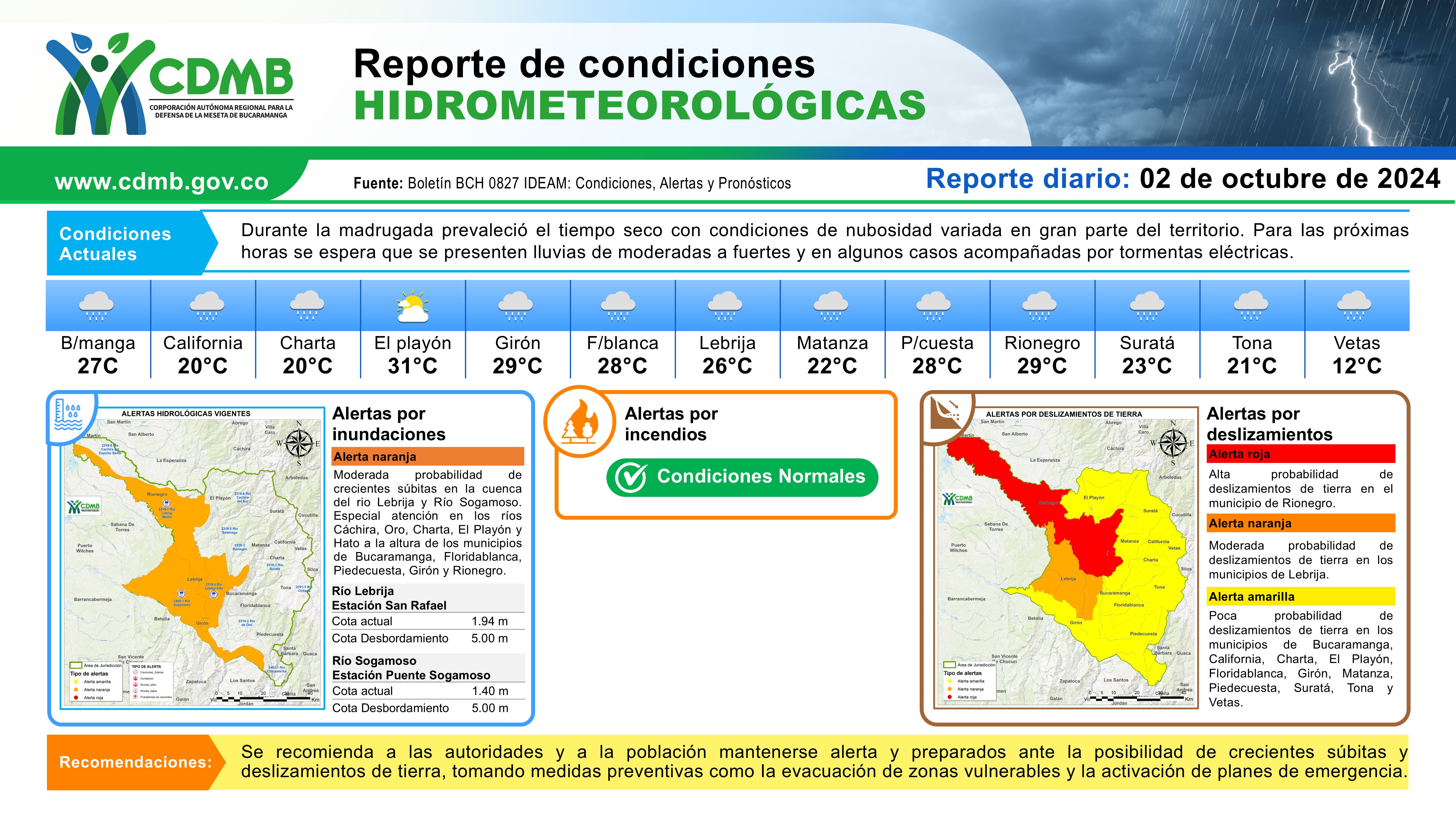 Reporte Alertas Hidrometeorológicas 02 de octubre