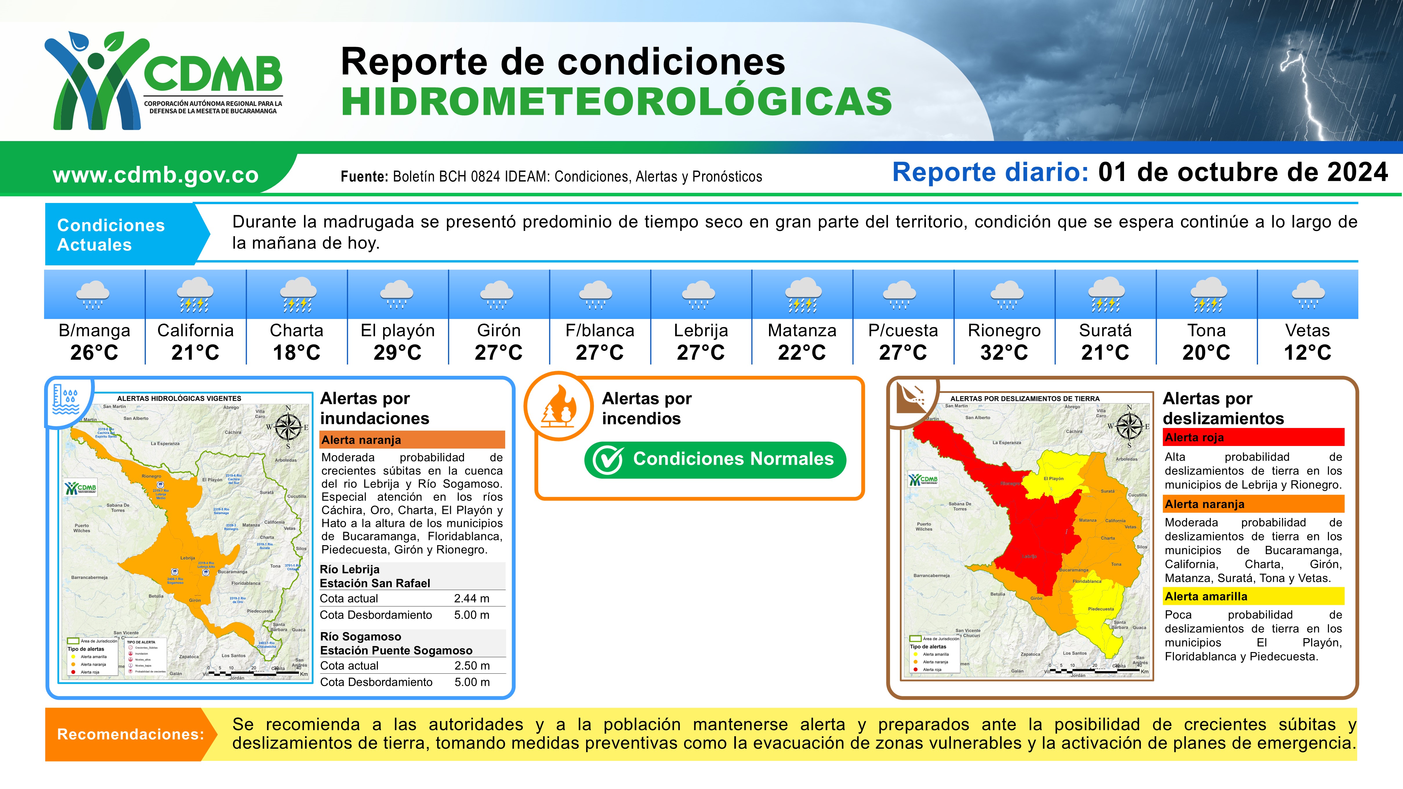 Reporte Alertas Hidrometeorológicas 01 de octubre