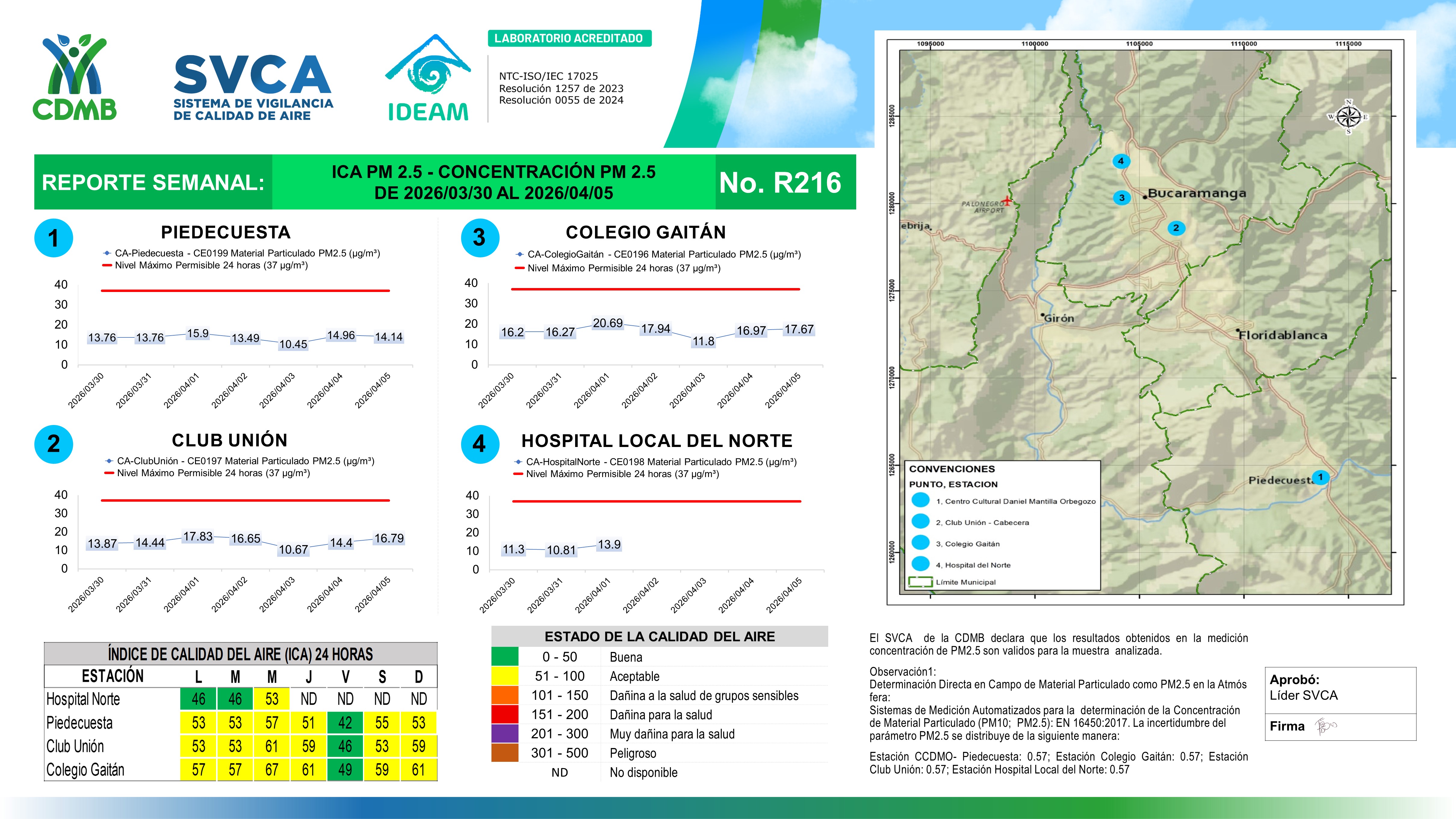 Reporte Semanal N° 216 — Índice de Calidad del Aire Concentración PM 2 5 — 30/03/2026–05/04/2026
