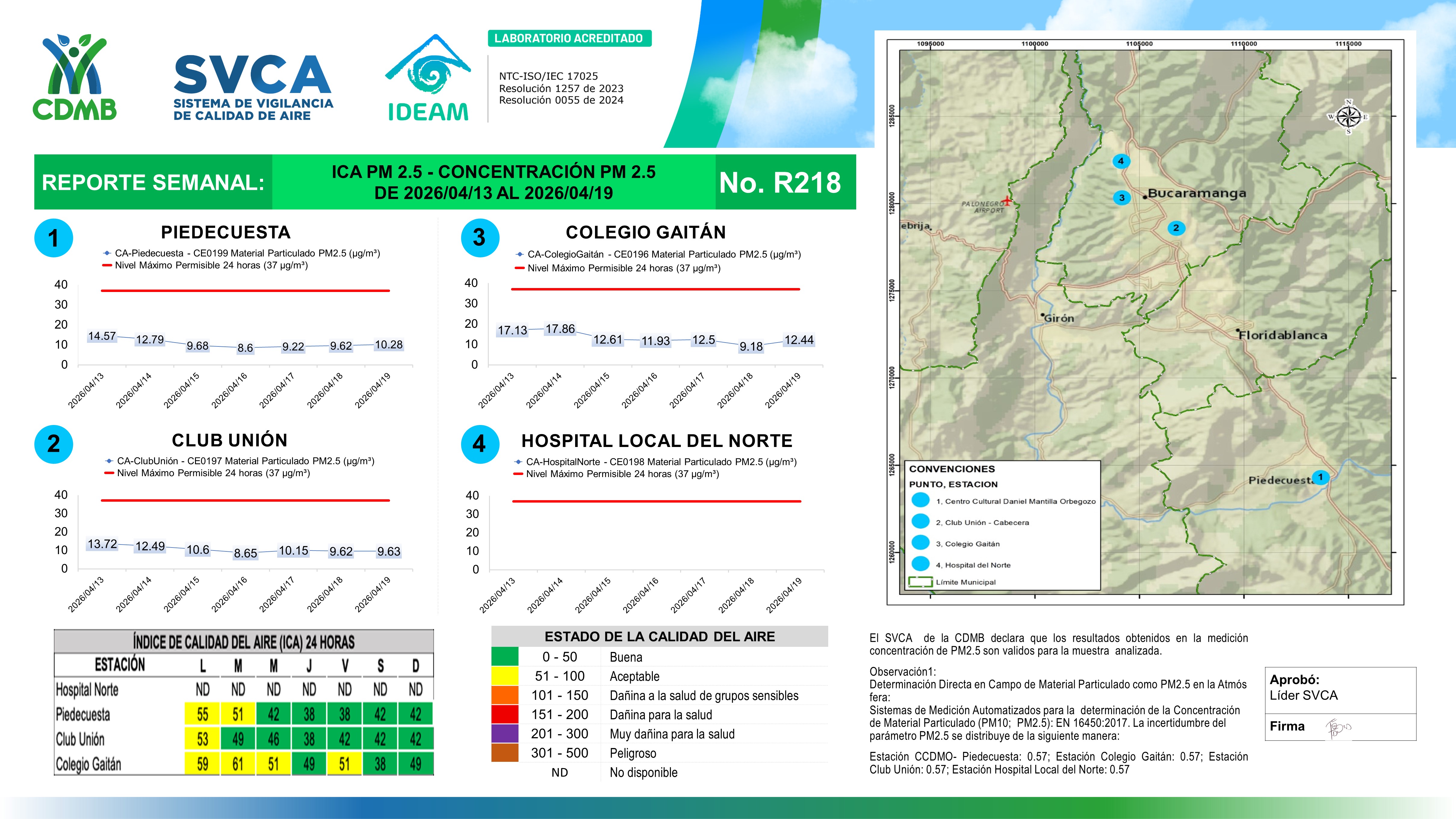 Reporte Semanal N° 218 — Índice de Calidad del Aire Concentración PM 2 5 — 13/04/2026–19/04/2026